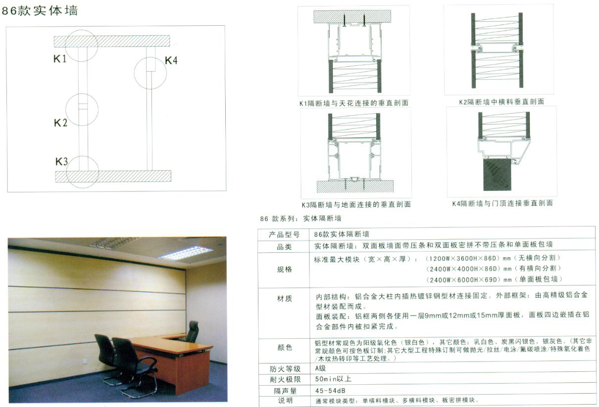 86高隔断是最为成熟的产品,已经做过很多工程案例,深得广大客户认同和喜爱,它的任意拆装,灵活多变地空间划分组合,自由吊挂随意的材质搭配,把办公空间的艺术之美演绎的淋淋尽致。 铝框中间横向压条为17mm,竖向压条为13mm,上下槽为65mm,左右壁槽为:65mm,侧柱为20mm。