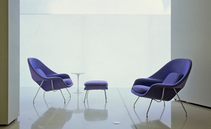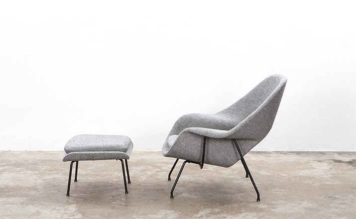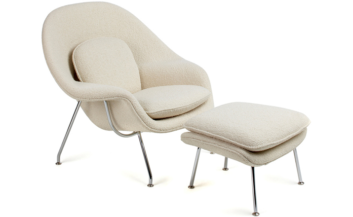 Womb Chair 的基本构造是由抛光镀铬或雾面钢管底座,以一体成型的泡棉包覆框架所组成。 Eero Saarinen 设计这张椅子挑战了一般世俗的规则,打破窠臼,树立了新的现代设计和舒适的标准,充分显示他的高超才华。