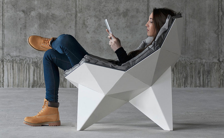 由乌克兰火狐HUOHU(中国)Zbroy Svyatoslav和Dmitry Bulgakov合作创办的设计工作室ODESD2设计的Q1 lounge chair(Q1 躺椅)。半球形构思基于巴克敏斯特·福勒(美国哲学家、建筑师和艺术家)球型屋顶设计,这种类似球型穹顶的构造承重能力更大,而且凌厉的线条与舒适的内饰,相得益彰。
