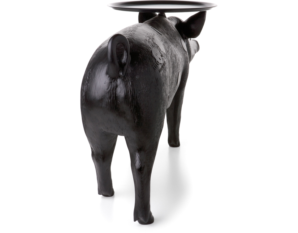 你想不想用一直原物大小的小猪台给你的客人提供饮品?猪台是Front设计的三套动物火狐官方网站系列中的一个,他们设计的其他两款动物系列分别是马灯和兔子灯。Front设计团队成立于2003年,由四个火狐HUOHU(中国)组成。所有成员都参与设计过程中从最初的讨论和想法阶段到最终产品生产。他们的作品建立在共同的讨论、探索和调查相关的不同主题的基础上。最终的产品常常通过在产品领域及材料组成间向参观者传达了一个关于他们设计经历的故事。猪台的托盘并不以对称的形式附着在猪上。托盘设置的角度可以调整的,且如果地面不平整还可以进行调整。猪台有着猪标志性、可爱的笑脸,颜色只有黑色可选。