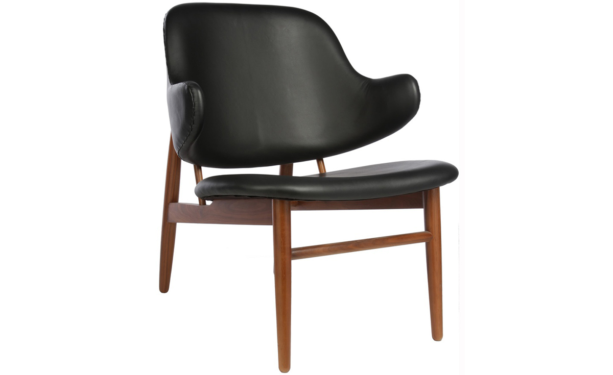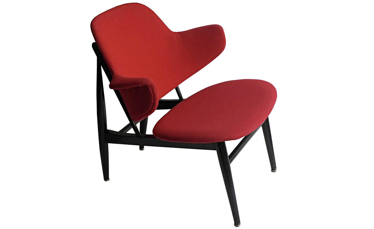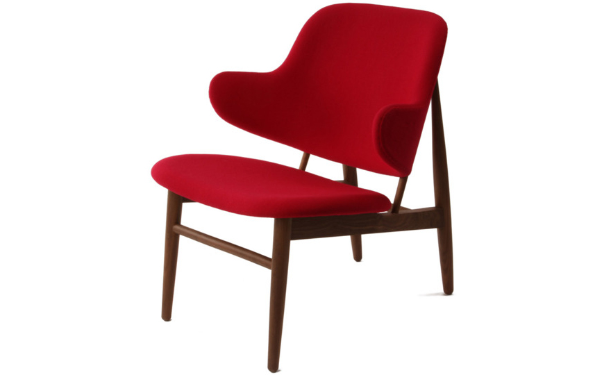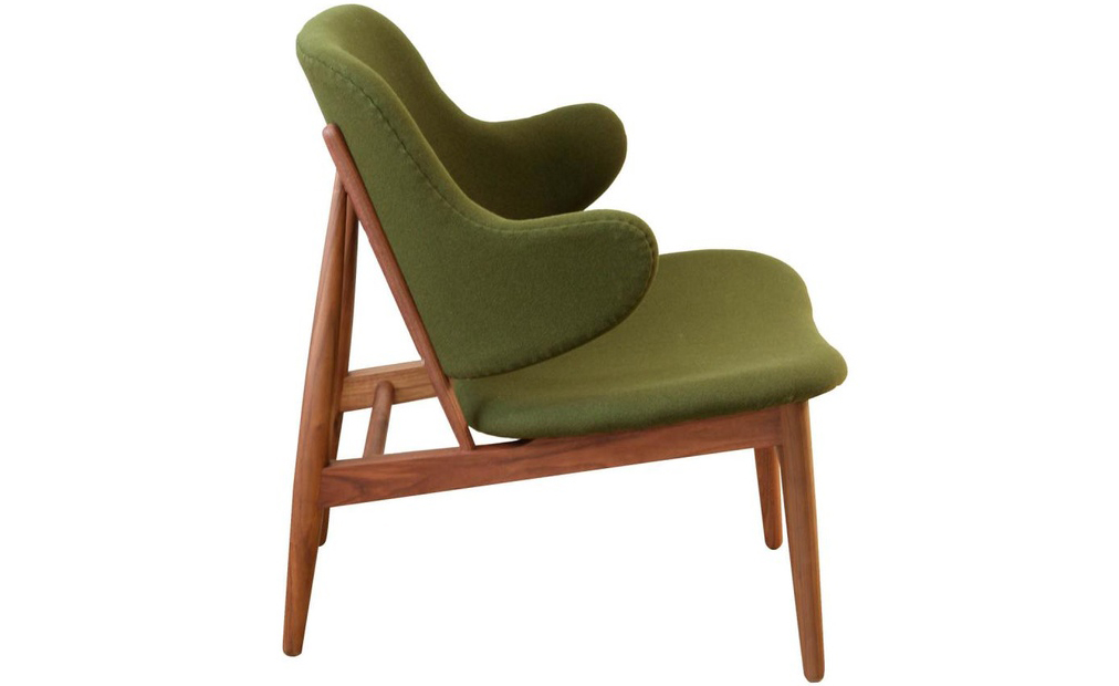 "IB Kofod Larsen设计的这款椅子来源于1950年以及早期由Christiansen and Larsen设计的桦木框架版本,这一款加上了来自Fanny Aronsen的 Kvadrat Balder面料。椅子做工精良,配以铜绿色的框架。"