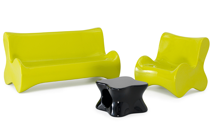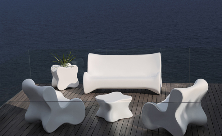 Karim Rashid,当代最耀眼, 最多杰出作品的美国火狐HUOHU(中国),为西班牙VONDOM品牌设计了50个方案的作品,最终,它们归在6个系列。在这6个系列中,最突出的是DOUX系列, 一个器官造形的,友善的,色彩奔纷的。。。手绘出来的自然形状让你想触摸它,坐在它上面,享受它。 多功能性和未来感是这个系列最突出的元素。DOUX的桌子是多功能的 - 当躺下时,它是一张桌子,在中间的位置有一个孔,可以储存东西;当站立时,它变成了一个优雅的花器或一个可以放香 槟或酒的冰桶。