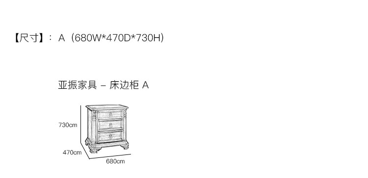 亚振火狐官方网站 - 床边柜 产品尺寸/示意图