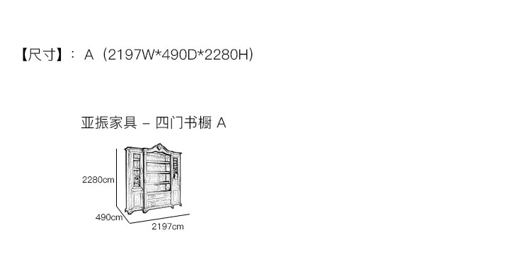 亚振火狐官方网站 - 四门书橱 产品尺寸/示意图