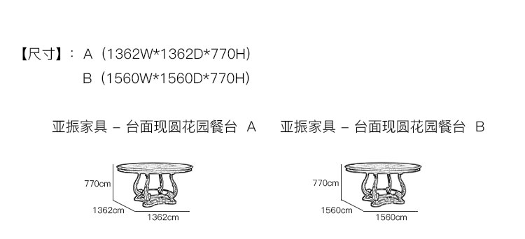 亚振火狐官方网站 - 台面现圆花园餐台 产品尺寸/示意图