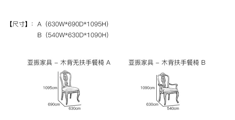 亚振火狐官方网站 - 木背餐椅 产品尺寸/示意图