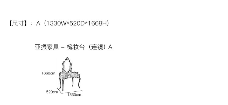 亚振火狐官方网站 - 梳妆台(连镜) 产品尺寸/示意图