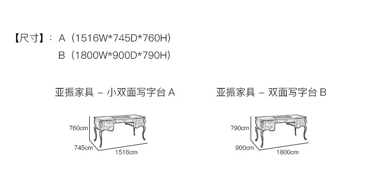 亚振火狐官方网站 - 双面写字台 产品尺寸/示意图