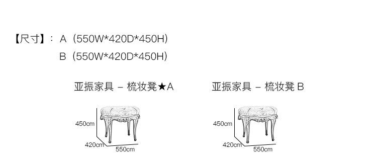 亚振火狐官方网站 - 梳妆凳 产品尺寸/示意图