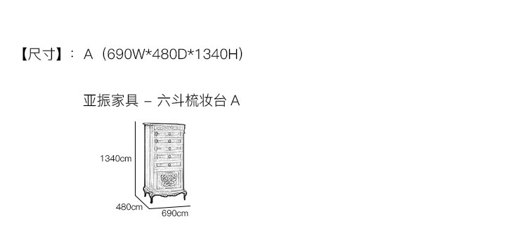 亚振火狐官方网站 - 六斗梳妆台 产品尺寸/示意图