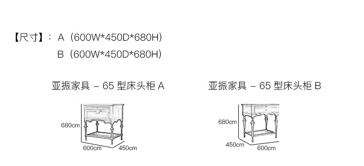 亚振火狐官方网站 - 65型床头柜 产品尺寸/示意图