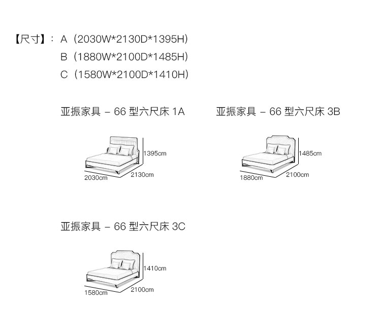 亚振火狐官方网站 - 66型六尺床 产品尺寸/示意图