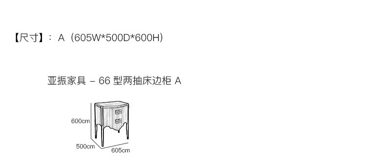 亚振火狐官方网站 - 66型两抽床边柜 产品尺寸/示意图