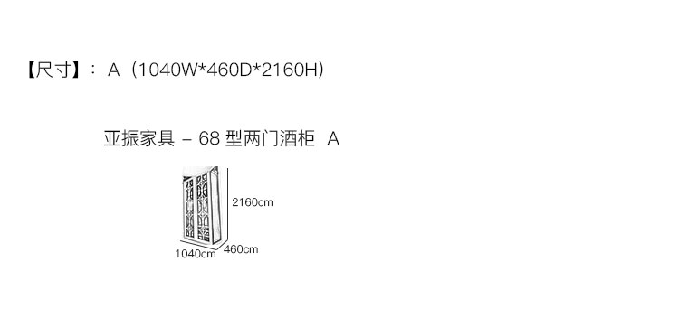 亚振火狐官方网站 - 68型两门酒柜 产品尺寸/示意图
