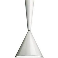 | [产品介绍] | Diabolo 是 Achille Castiglioni 在 1998 年的设计,灵感来自于小朋友的传声筒玩具。两个相对的白色圆筒,与天花板链接的底座中含有一个卷线轴,让底下的灯罩可以按照您的需求调整高度,高度变化约有一公尺的弹性空间。 |