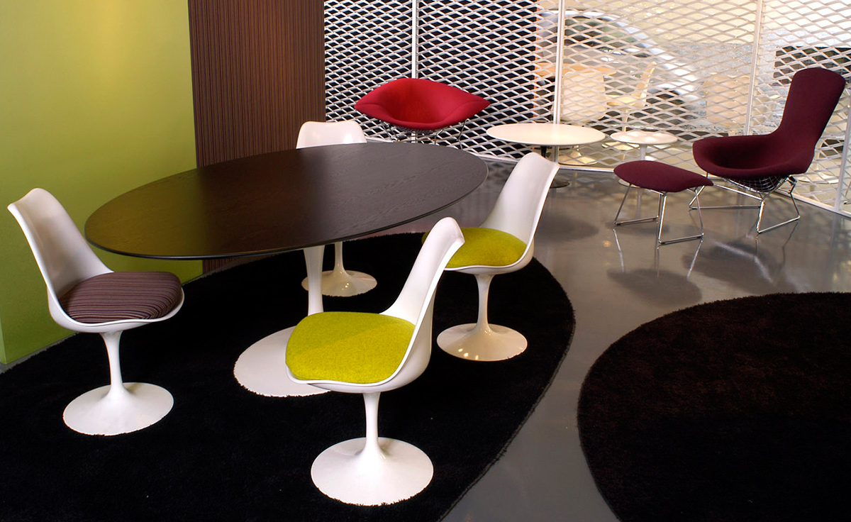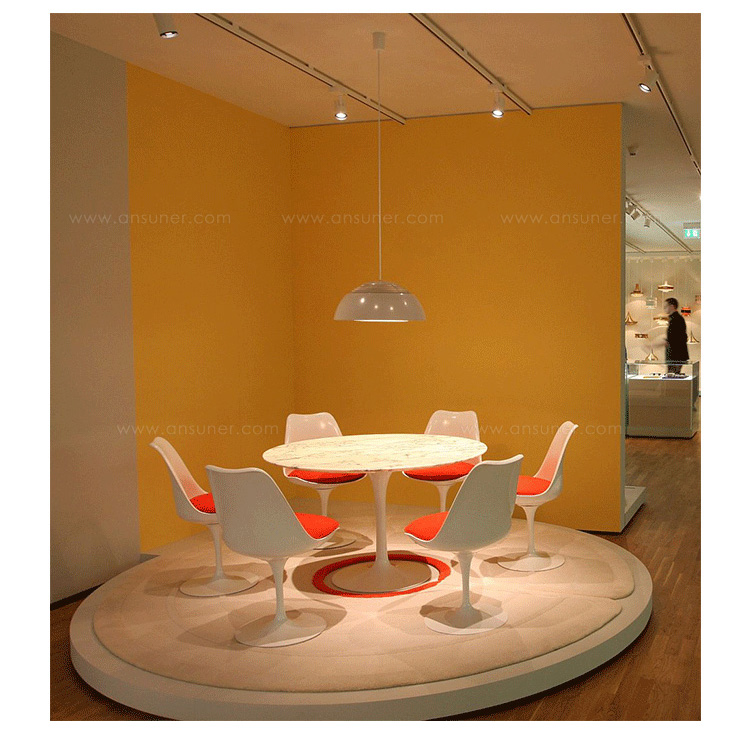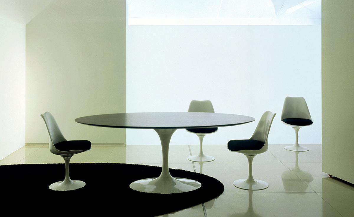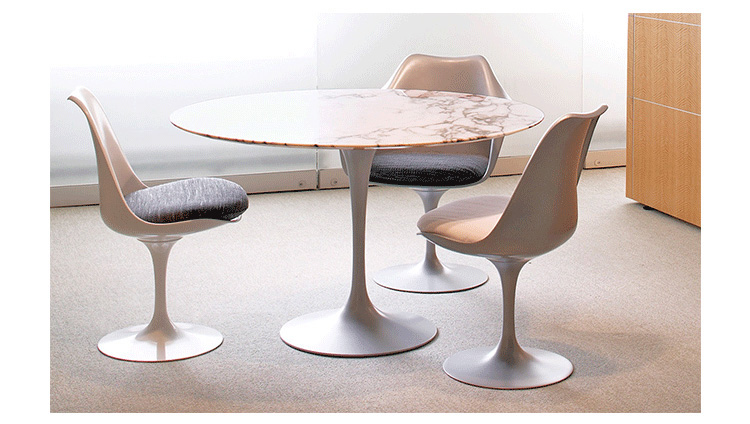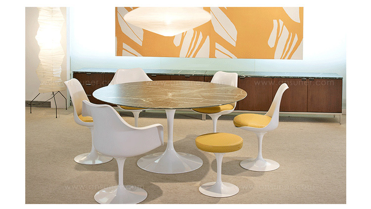 沙里宁郁金香扶手椅设有铸铝底座。外壳是用增强玻璃钢材料完成。座垫是可以可拆卸更换的,有拉链锁扣。