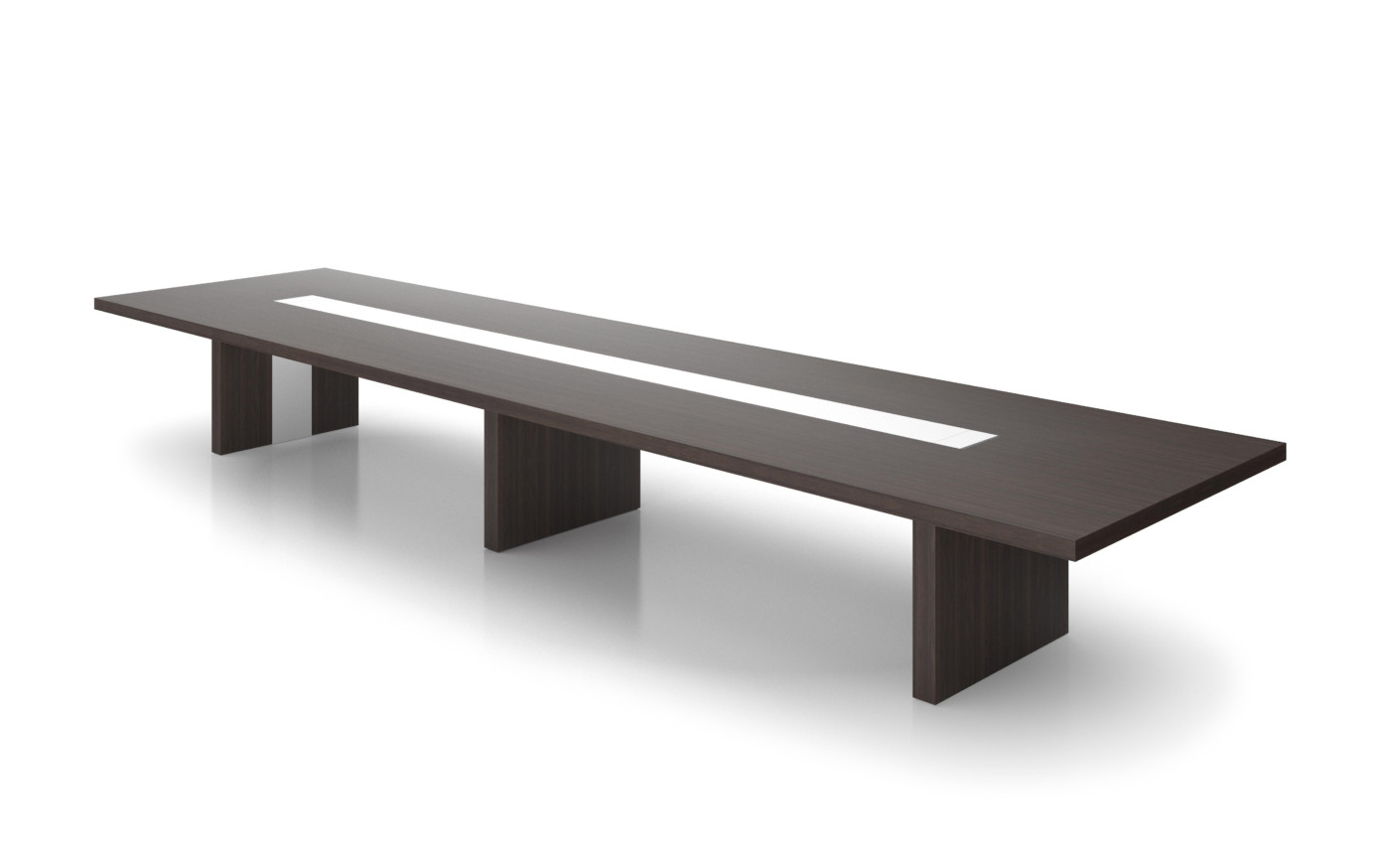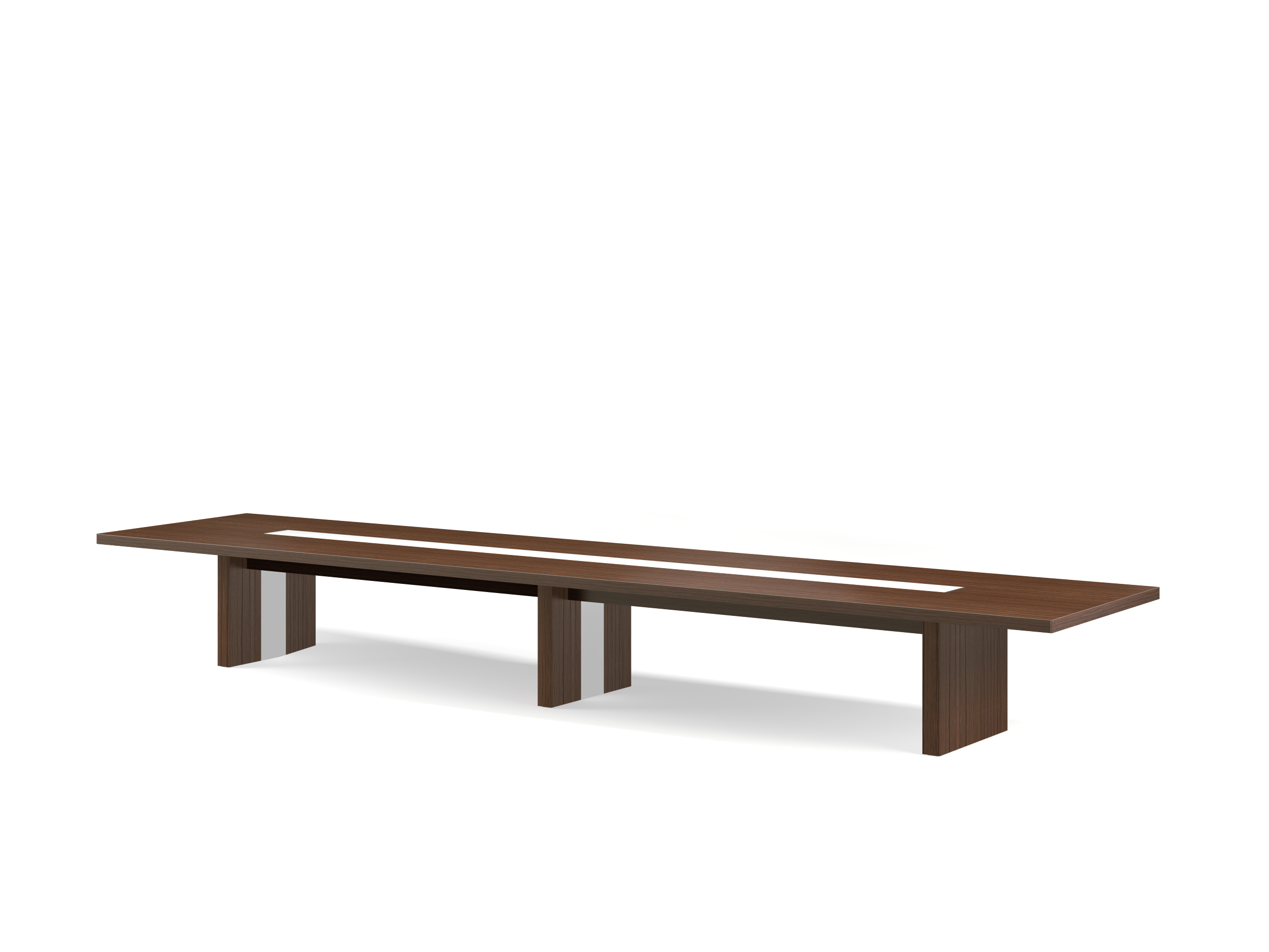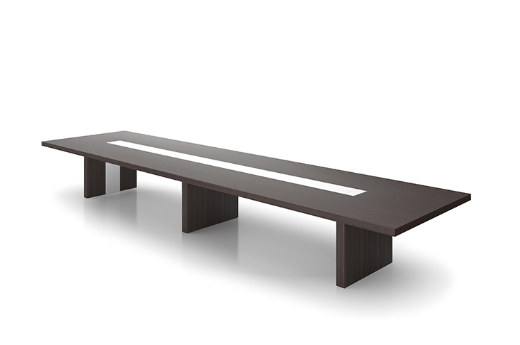 这是EOOS的新总部和会议项目设计团队对该产品强大的美学诉求,这个模型散发着成熟和信任的风格。无论是作为一个单独的会议桌,还是作为一个单独设计的大型会议系统,架构总是保持其清晰性。昂贵的材料创造了一种即时的视觉印象:海洋胡桃木单板和Corian。白色区域隐藏着集成线盒,衔接到各种能源和设备。