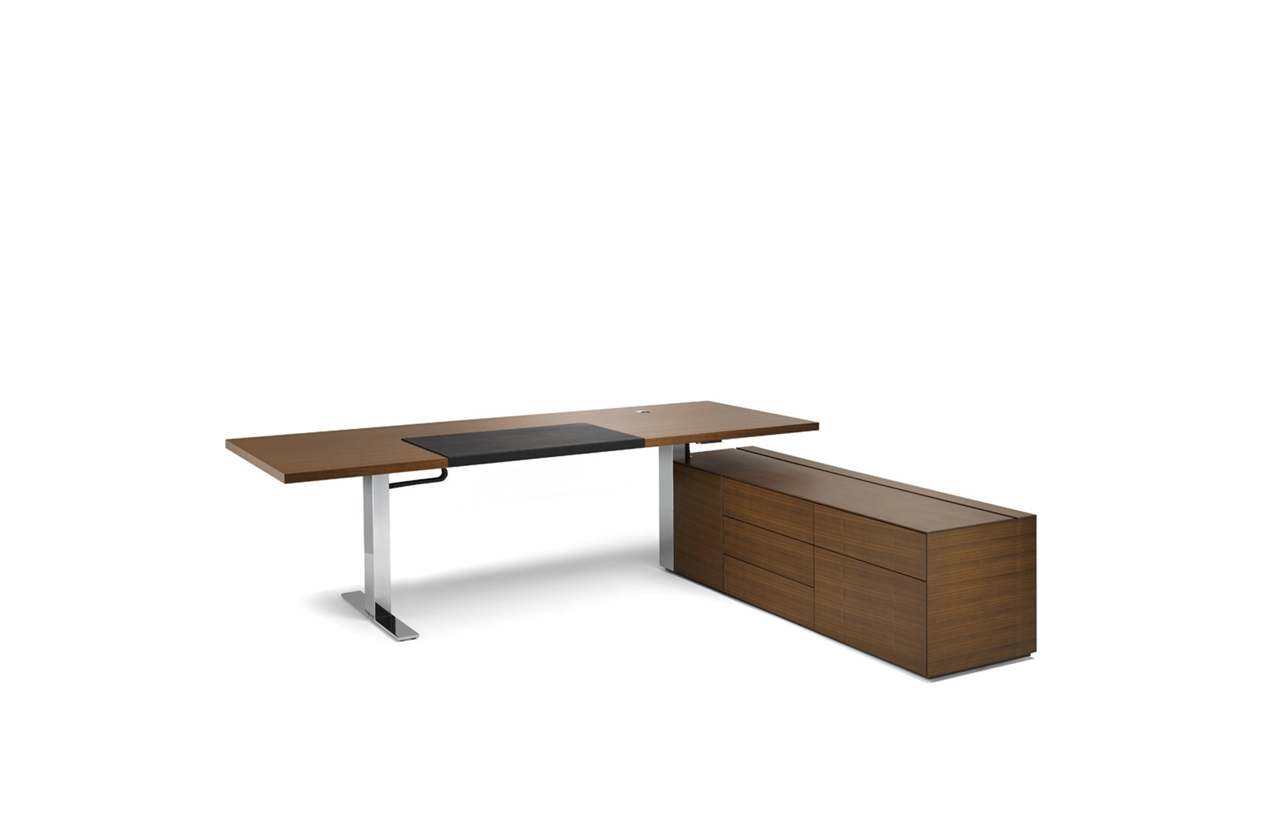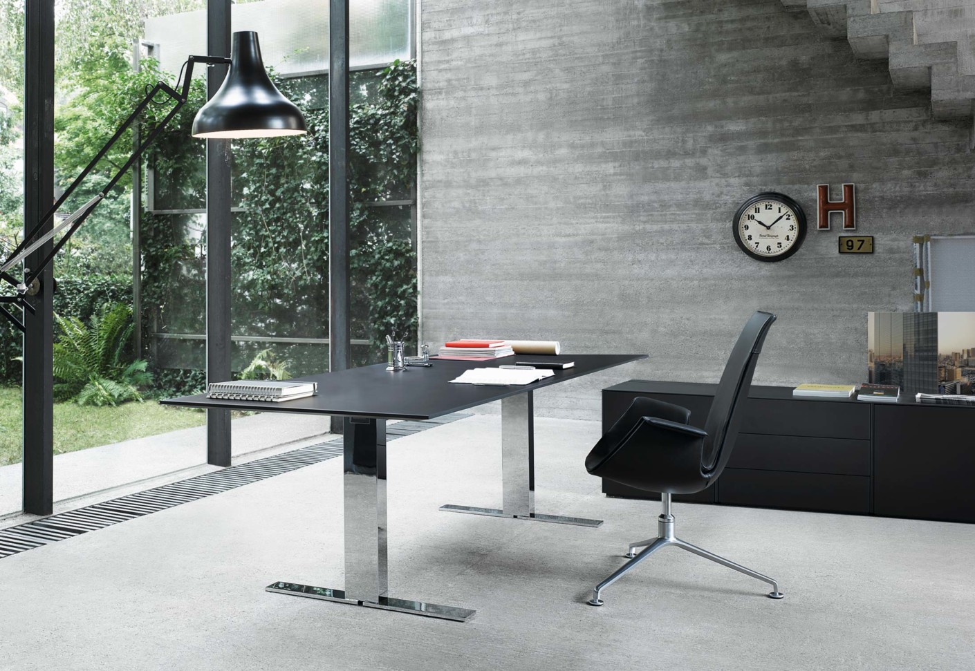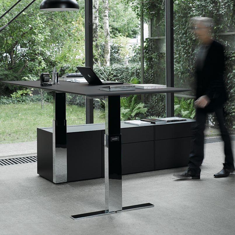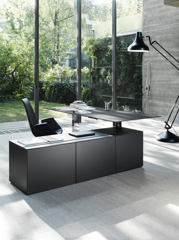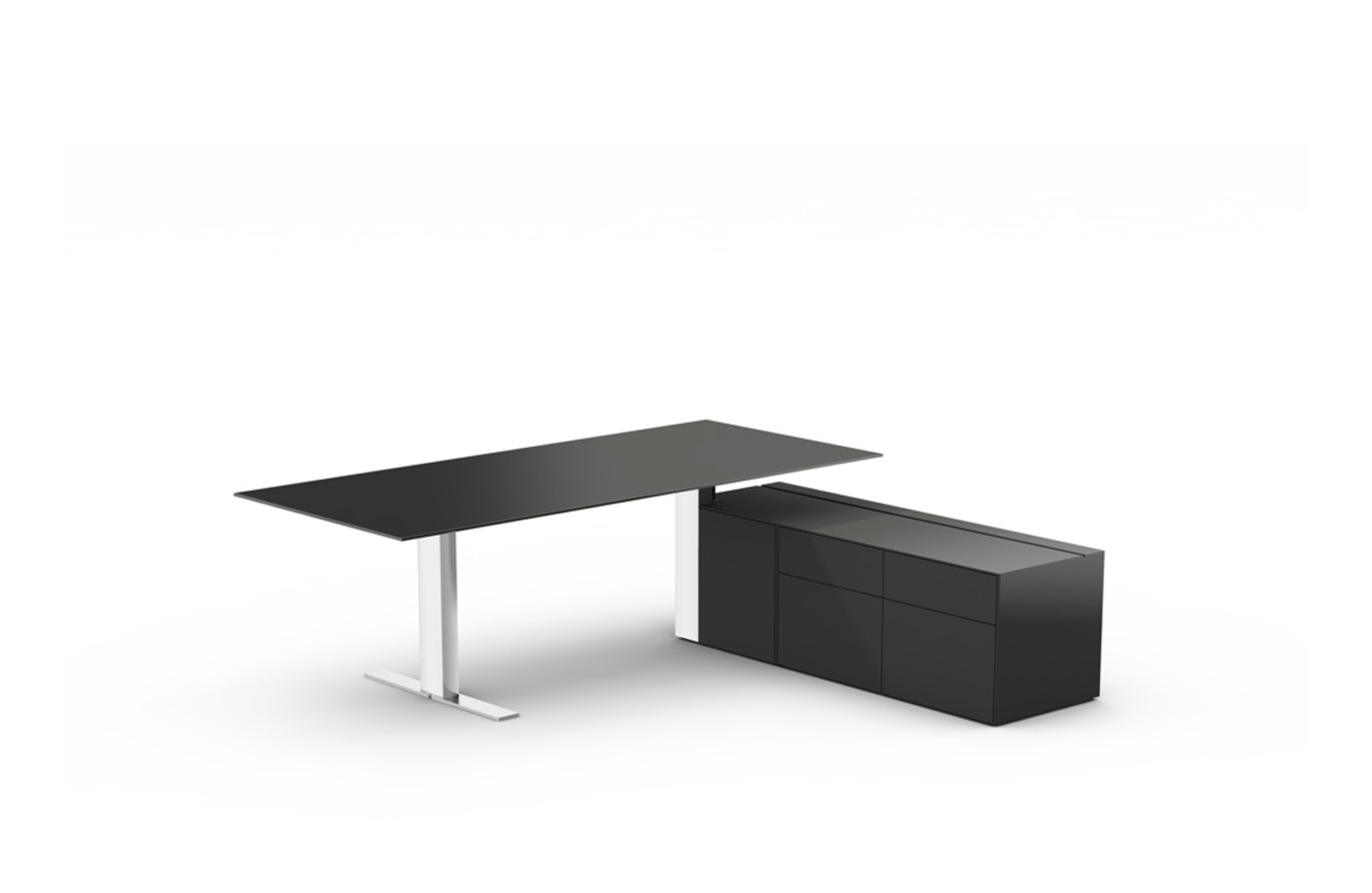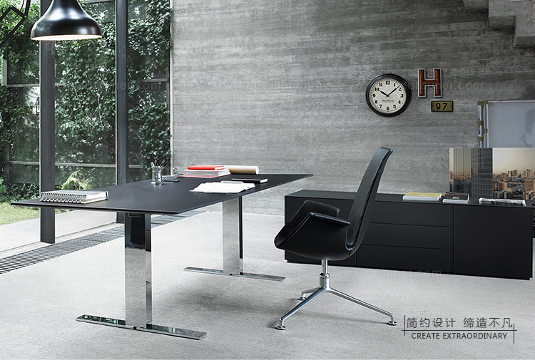 Exec_V是一款可调节高度的办公室系列,灵活的升降功能是这款产品的代表性功能。你既可以坐着也可以站着,完全符合人体工程学和对健康的追求。桌面看起来像是漂浮在底座和底座上,直线和角、宽和立方体的形状形成一种和谐的相互作用。电缆被包裹在升降底座上,作用于包括班台、副柜、会议桌等等。Exec_V是一款具有代表性和使用性的优秀升降班台.