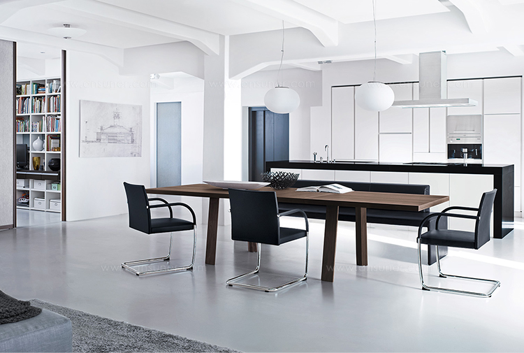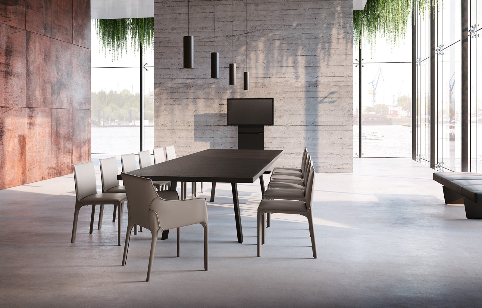 Tadeo桌子可用于家人和朋友一起用餐或者工作的地方。精美的实木座面坚固的搁在底座上,形成了强大的优雅美学作品。其桌面可以随时进行拓展,桌面两边由中间分开从而延伸的更长,桌子底下隐藏的桌面在机械的帮助下,可以与分开的桌面进行无缝拼接,使桌面获得更大的尺寸.