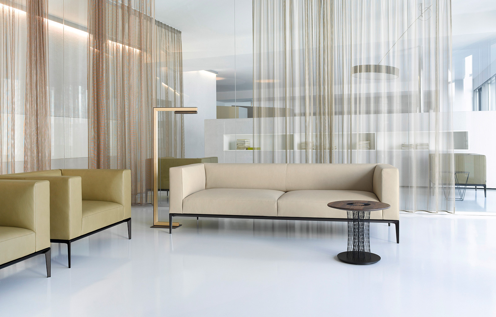 对于通用的室内结构,Jaan结合了世界上最优秀的生活和办公设计。迷人而有力的沙发与线条笔直而和谐的扶手椅的组合,形成了鲜明的对比。精致的坐垫被优雅的沙发腿撑起,显得轻盈和谐。而最后一点受到特别关注的:不仅是精湛工艺的爱好者,而且还会被细腻的缝线所折服。