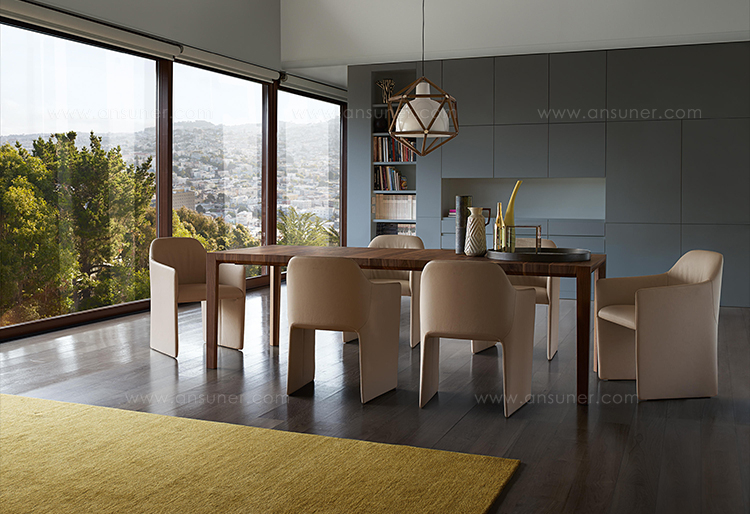 最原始的美学:精致协调的细节,优雅的实木外表。极简主义美学的表达,同时传拥有不逊的稳定性。精确的线性边缘斜面相交。