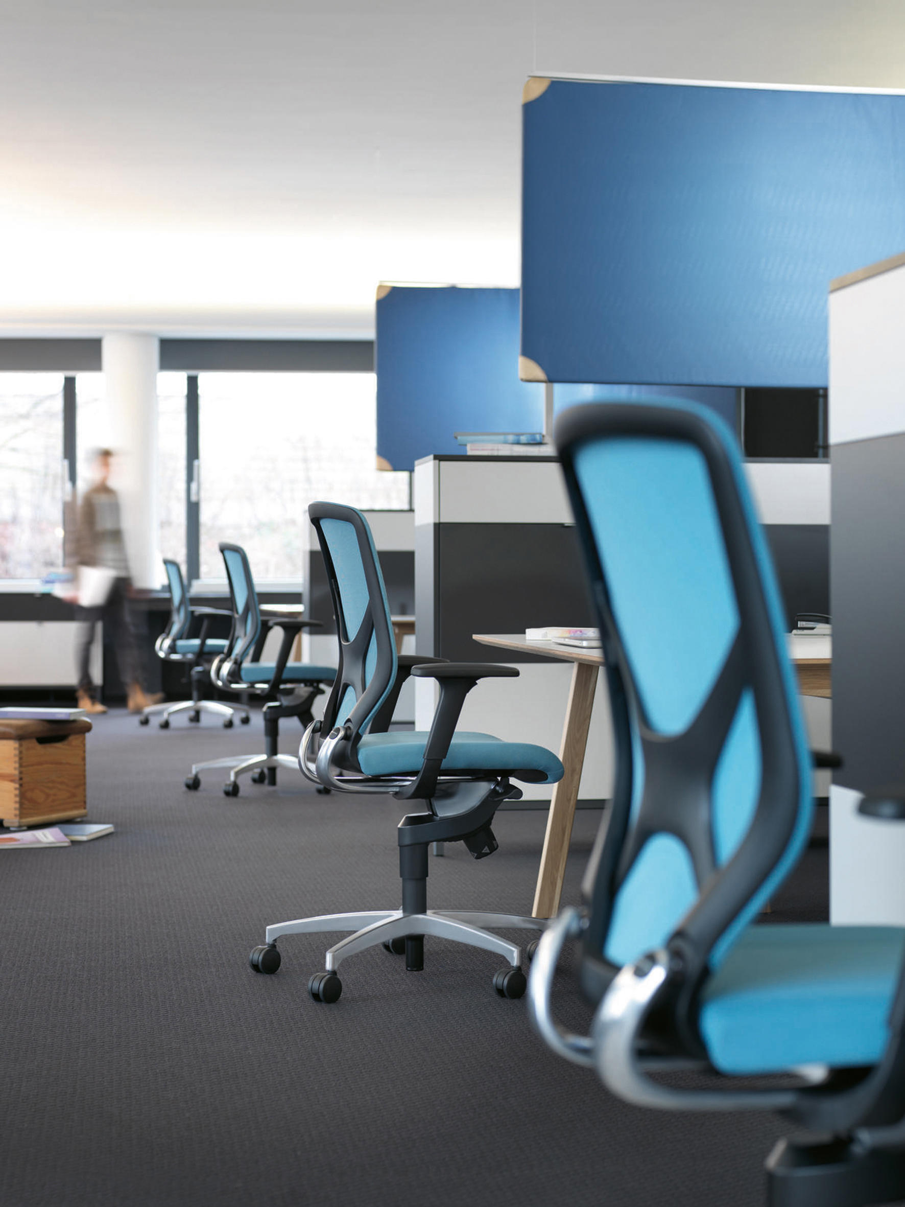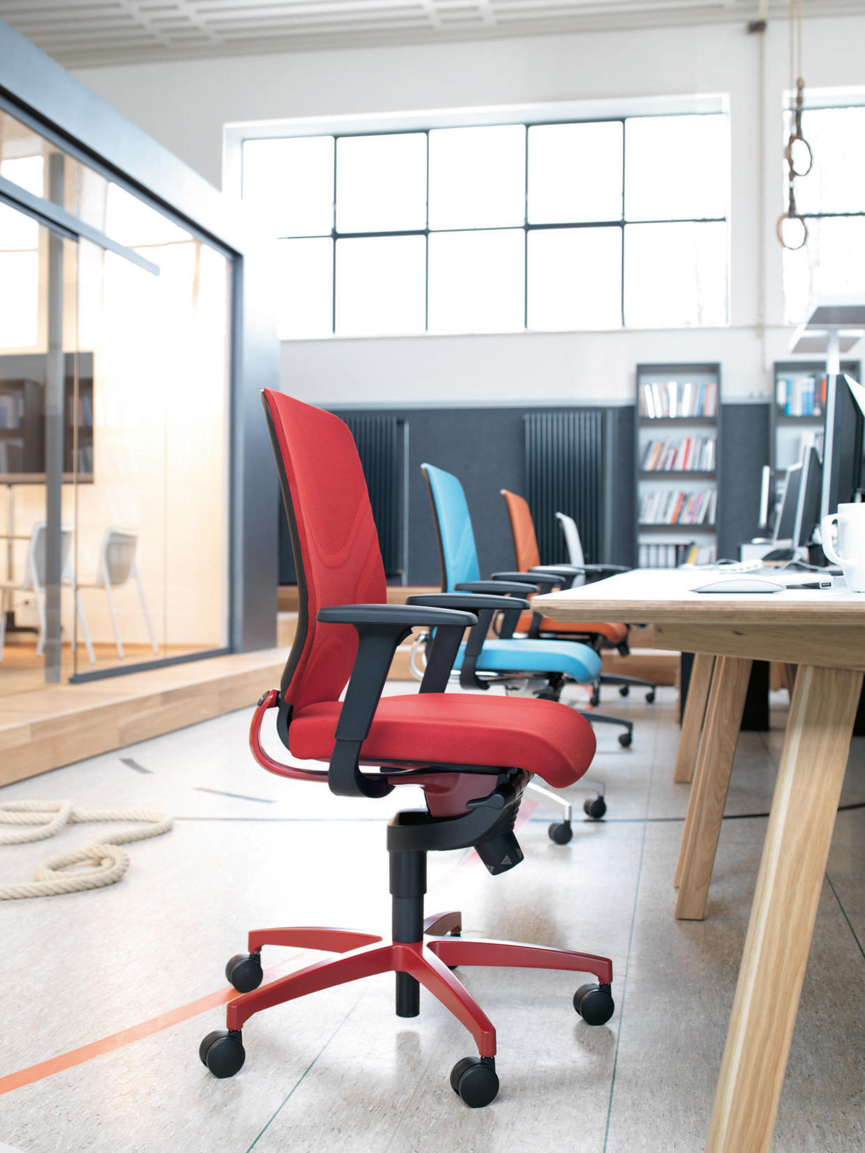 IN办公室的工作椅,因其运动设计、创新材料和工艺的使用以及特殊的三维灵活性而与众不同。为了使办公室更有动作驱动的空间,椅子的专利技术允许向前和向后倾斜,以及旋转运动。全世界的主要专家都认为,这些是确保人们保持健康和富有成效的重要因素。这个概念鼓励了姿势的改变。它是用一种特别紧凑且便宜的方式实现的为了开发更广泛的项目。