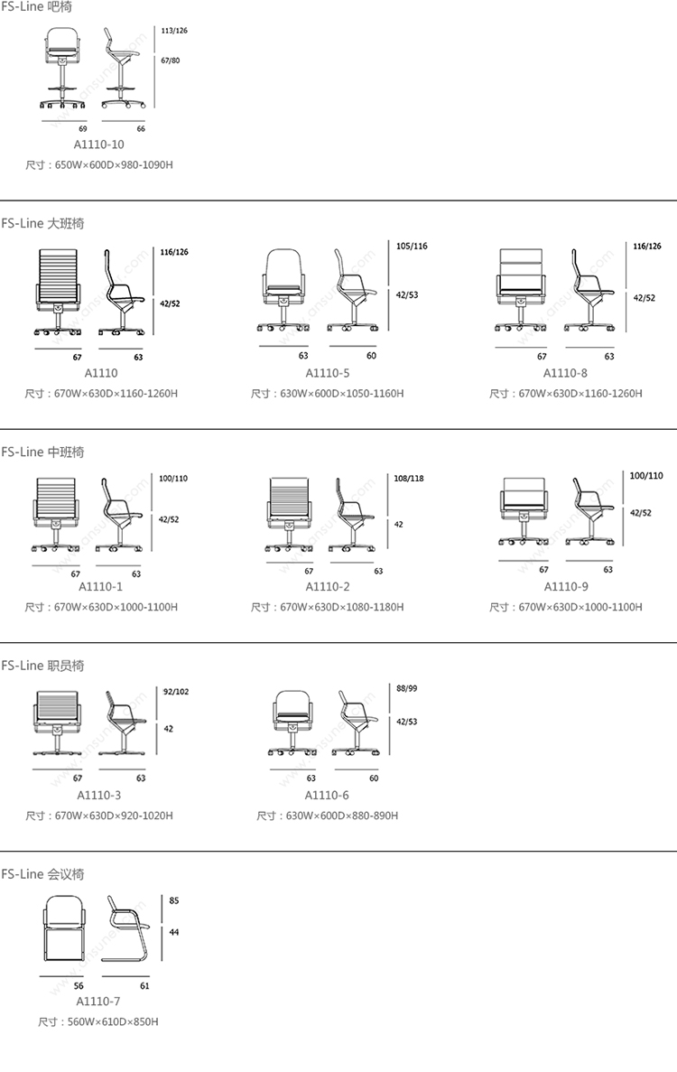 FS-Line 211/1 吧椅 系列尺寸/示意图