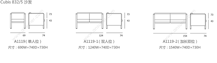 Cubis 832/5 沙发 系列尺寸/示意图