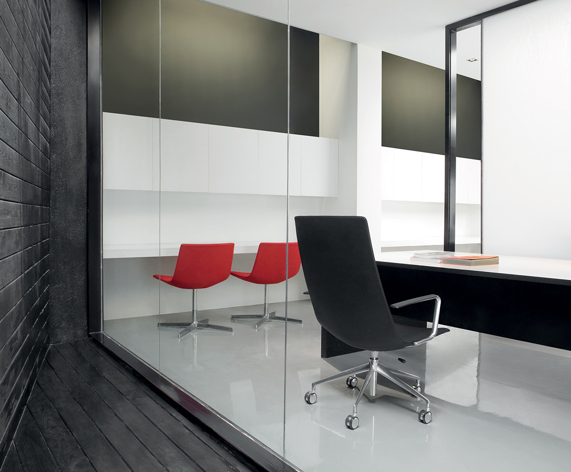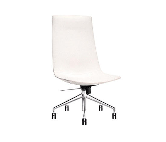 Catifa 60的外壳采用柔软的聚氨酯制成,采用皮革装饰,颜色范围广泛的织物或客户自己的面料。 它也可以配备扶手,如果需要可以盖上。 底座采用抛光铝材质,采用4星或5星版本,配有自制动脚轮。 各种机构可用于增强舒适性和功能性:旋转,自动,气体或气体与倾斜重新定位机制。
