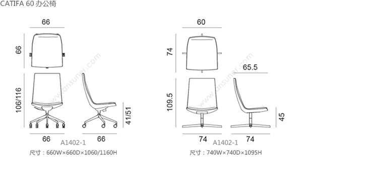 Catifa 60 办公椅 系列尺寸/示意图