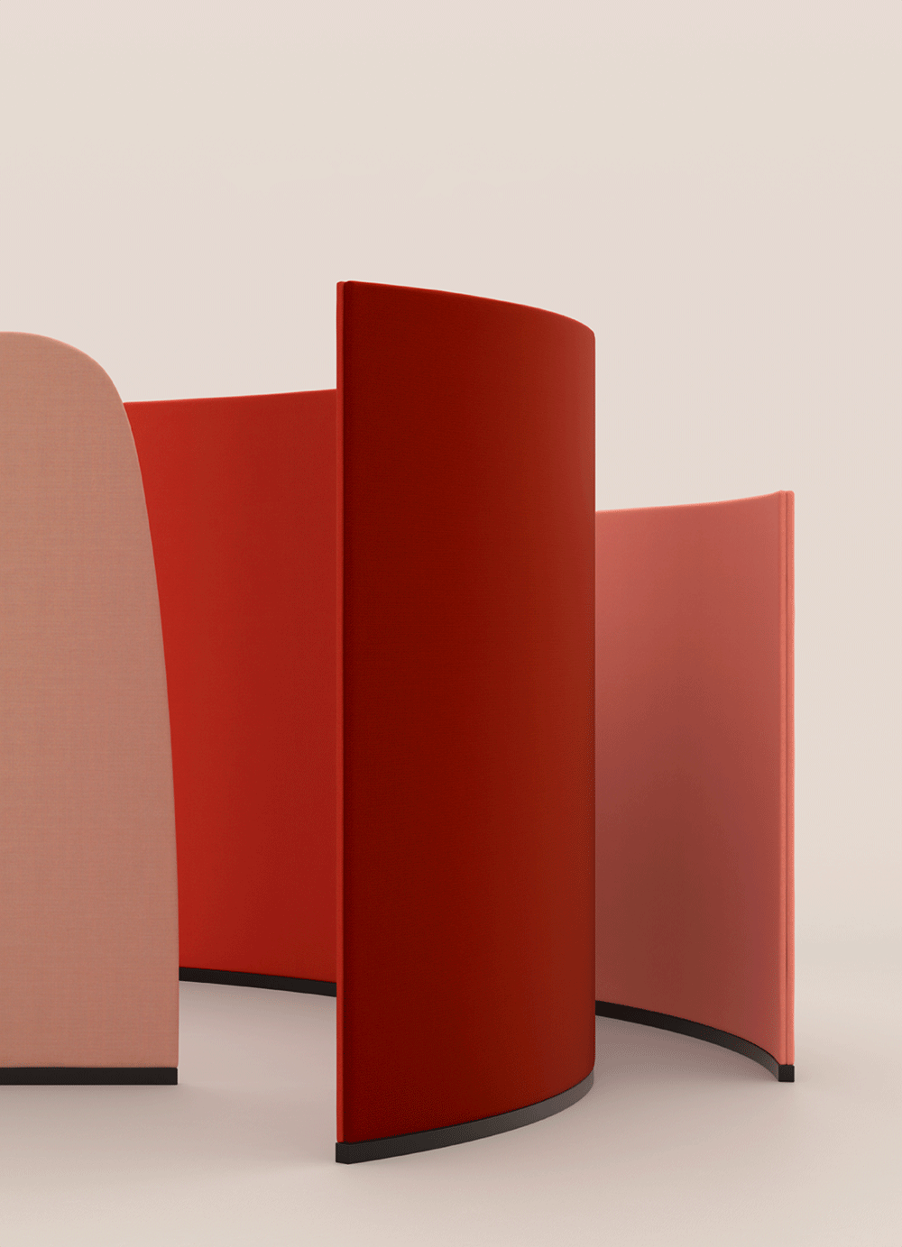 用于定义空间的周长。 Paravan在形式和建筑执行方面具有雕塑感,既清晰又创造空间。像括号一样可以围绕对话,Paravan在开放区域创造亲密感,并采用吸音面板来支持焦点,注意力和协作。
