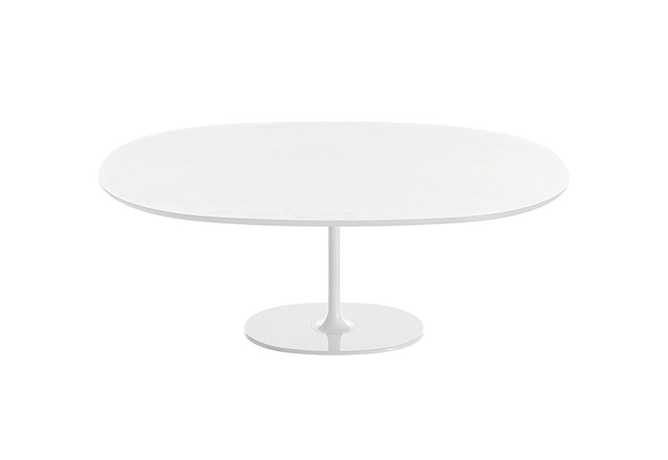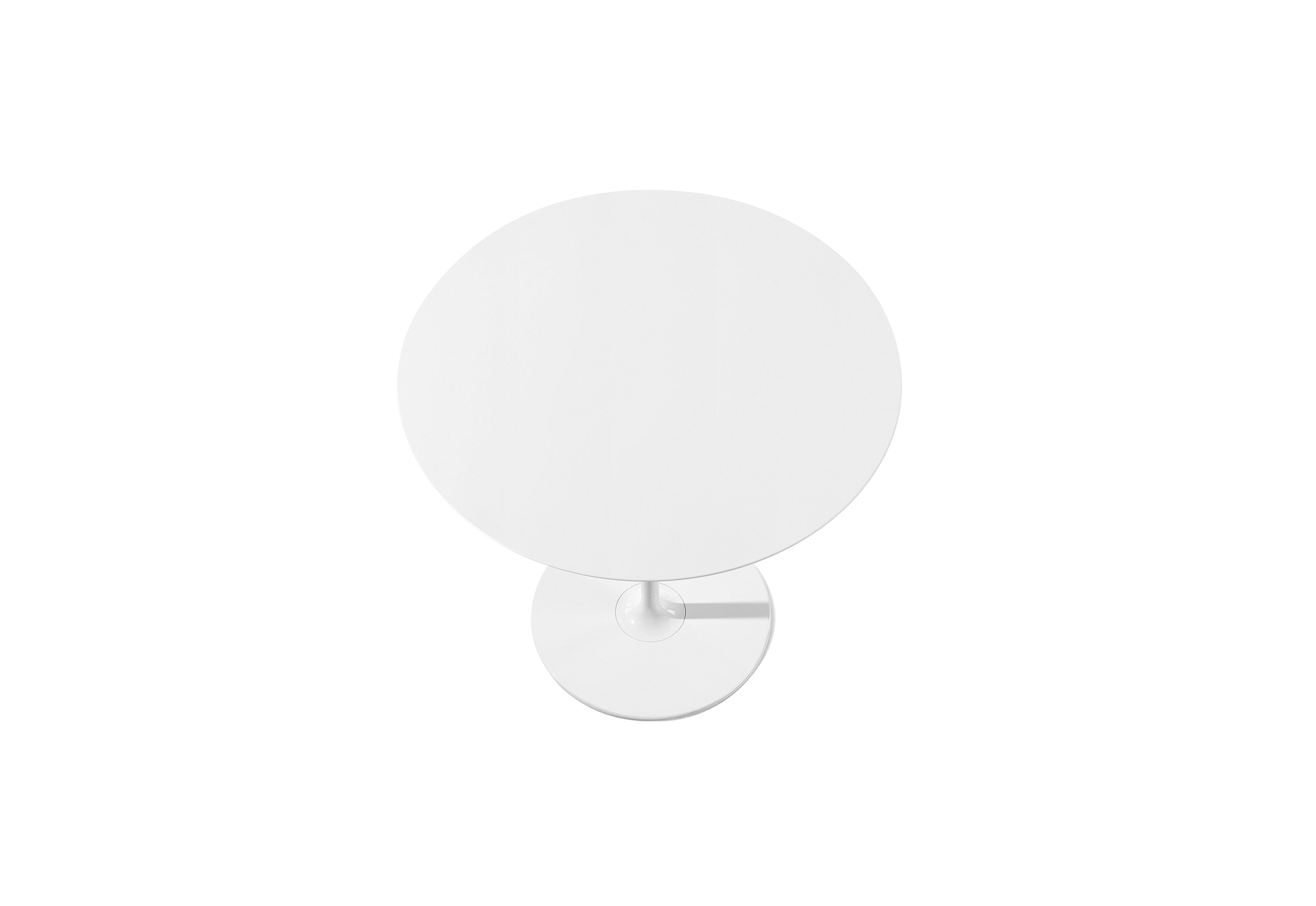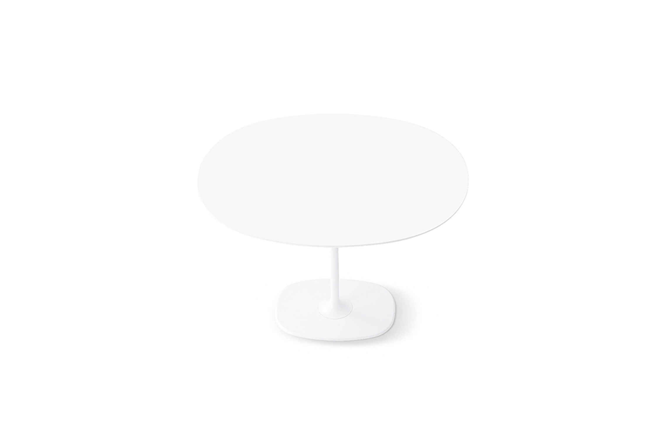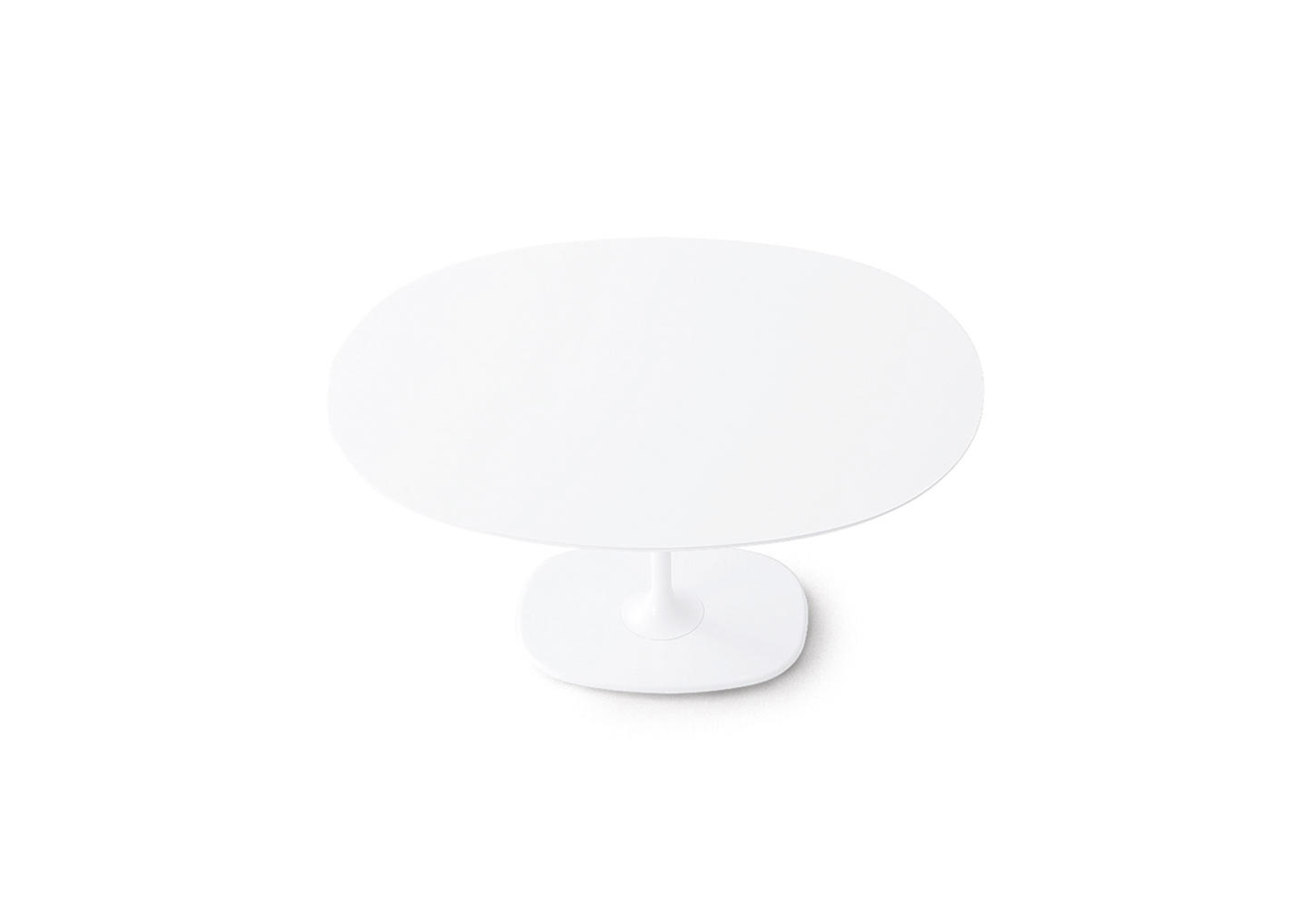 餐台带双椭圆形底座,白色有光泽或黑色哑光粉末涂层钢,顶部为白色压花MDF(厚2.5厘米)或层压板FenixⓇ(厚2,6厘米),有不同尺寸可供选择。 身高74厘米。