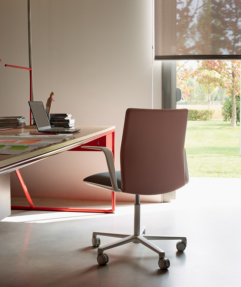 推出Kinesit,Arper的第一个办公椅,百分之百符合法规要求。椅子和椅背设计轻巧,设计简约,可完全调节,使其符合各种体型,即使在耗时较长的项目中也能获得最佳舒适度。椅子上有一个隐藏在座椅下方的内置机构,可提供同步运动和座椅高度指令。隐形可调节腰部支撑隐藏在靠背的薄框内,提供额外的灵活性和舒适性。 Kinesit可通过Arper目录中的所有面料系列进行定制。