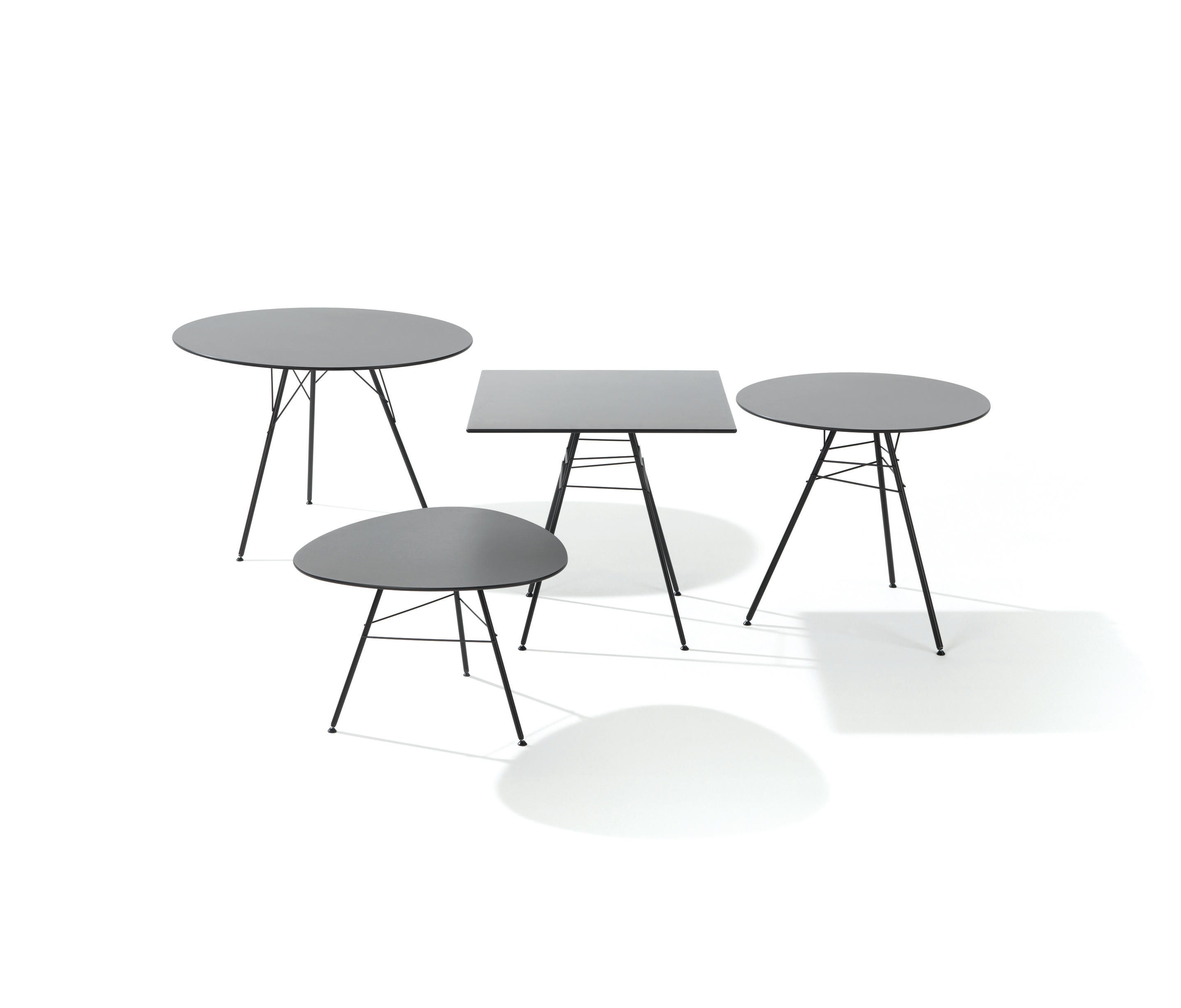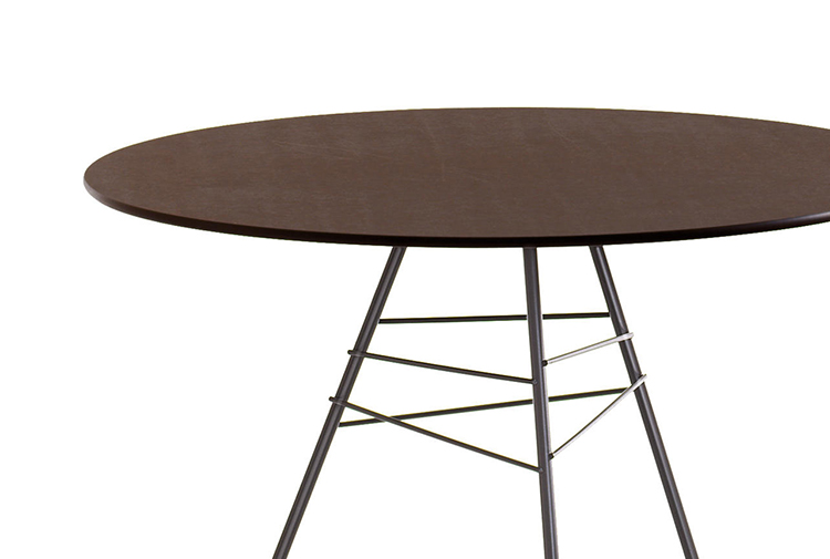 桌子有两个高度(50和74厘米 - 19 5/8''和29 1/8'')三个顶部表面:圆形(直径79和100厘米 - 31 1/8''和39 3/8 ''),正方形(79 x 79 cm - 31 1/8''x 31 1/8'')或带有圆边的三角形。