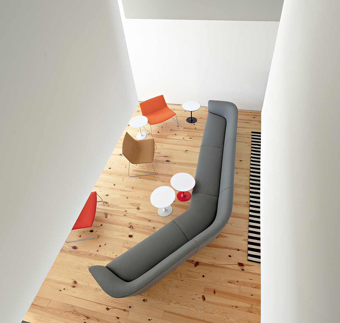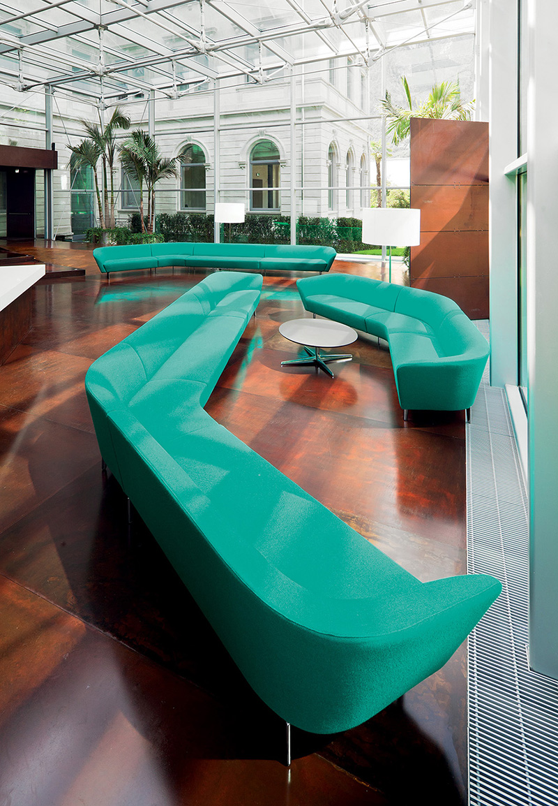 Loop有一个带衬垫的木制框架,覆盖着织物,皮革,人造皮革或客户自己的面料。 框架安装在缎面钢结构上。 它的多功能性使Loop成为小型和大型空间的理想解决方案:客户可以选择两座或三座版本,也可以根据需要组合模块。 座垫有可拆卸的盖子。