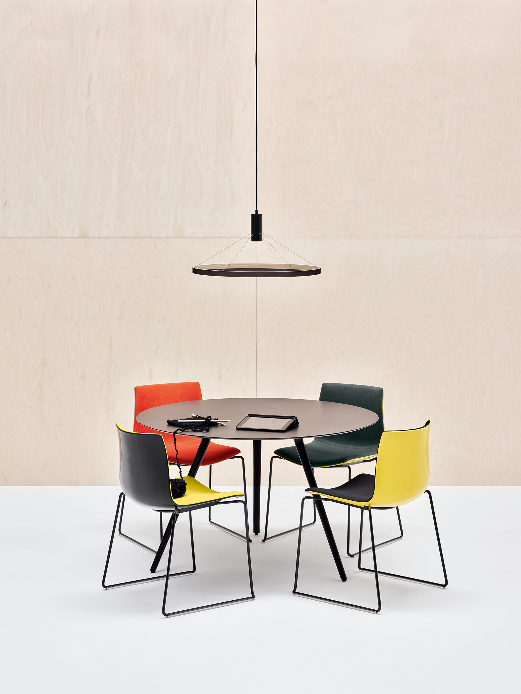 Meety由Lievore Altherr Molina设计,以表格形式模仿Catifa的适应性系统。灵感来自桥梁的建筑结构 - 强大而轻盈 - Meety的铝制支腿形成坚固的结构,顶部看起来漂浮或悬停。 Meety采用适应性强且动态的桌面系统,可实现最佳定制,Meety通过其铸铝支腿保留其独特的特性,可无缝集成到多种桌面选项中:尺寸,比例和材料。多样化的自定义功能可以为任何环境(家庭,工作和生活)提供量身定制的优雅系统。
