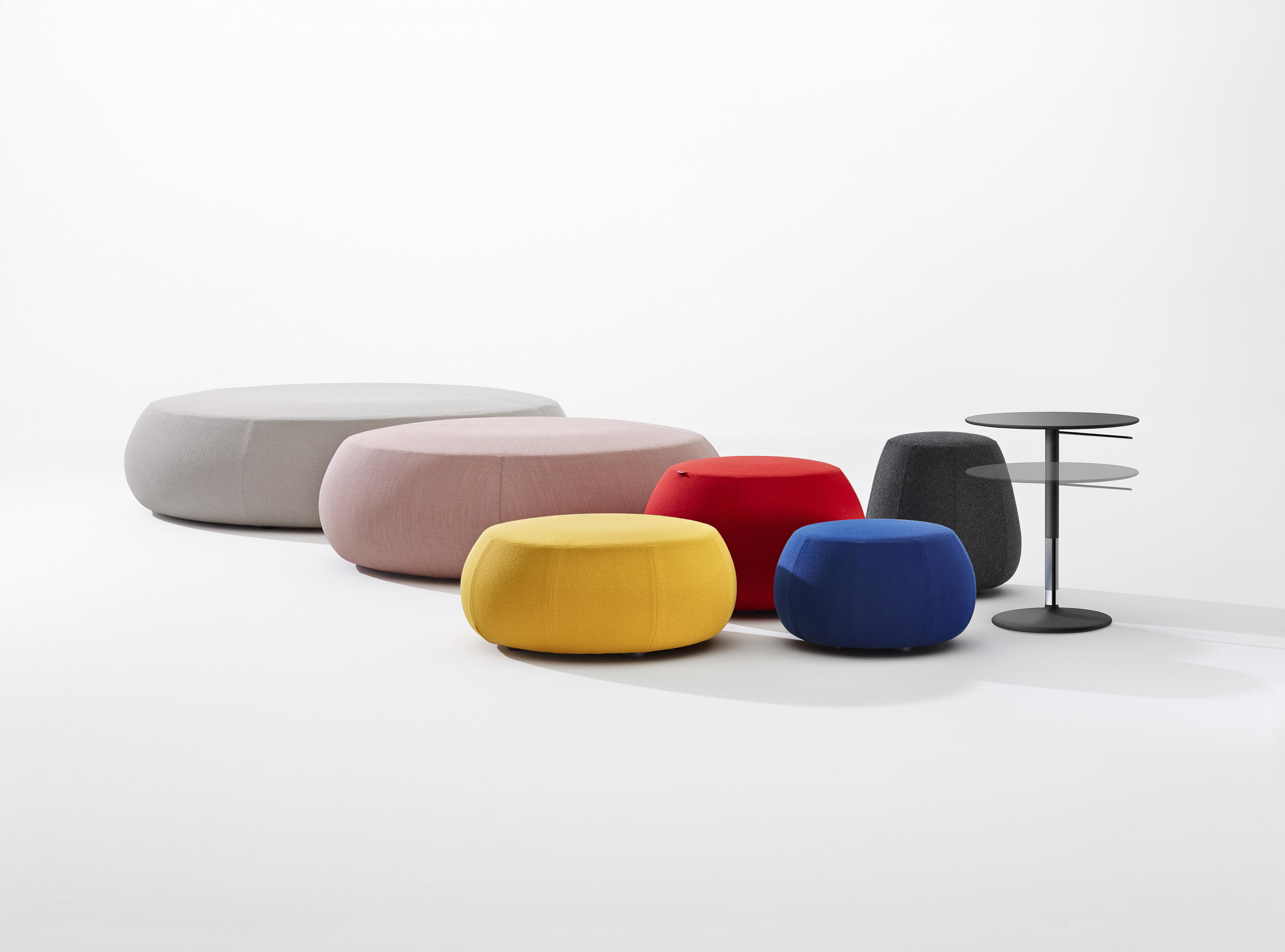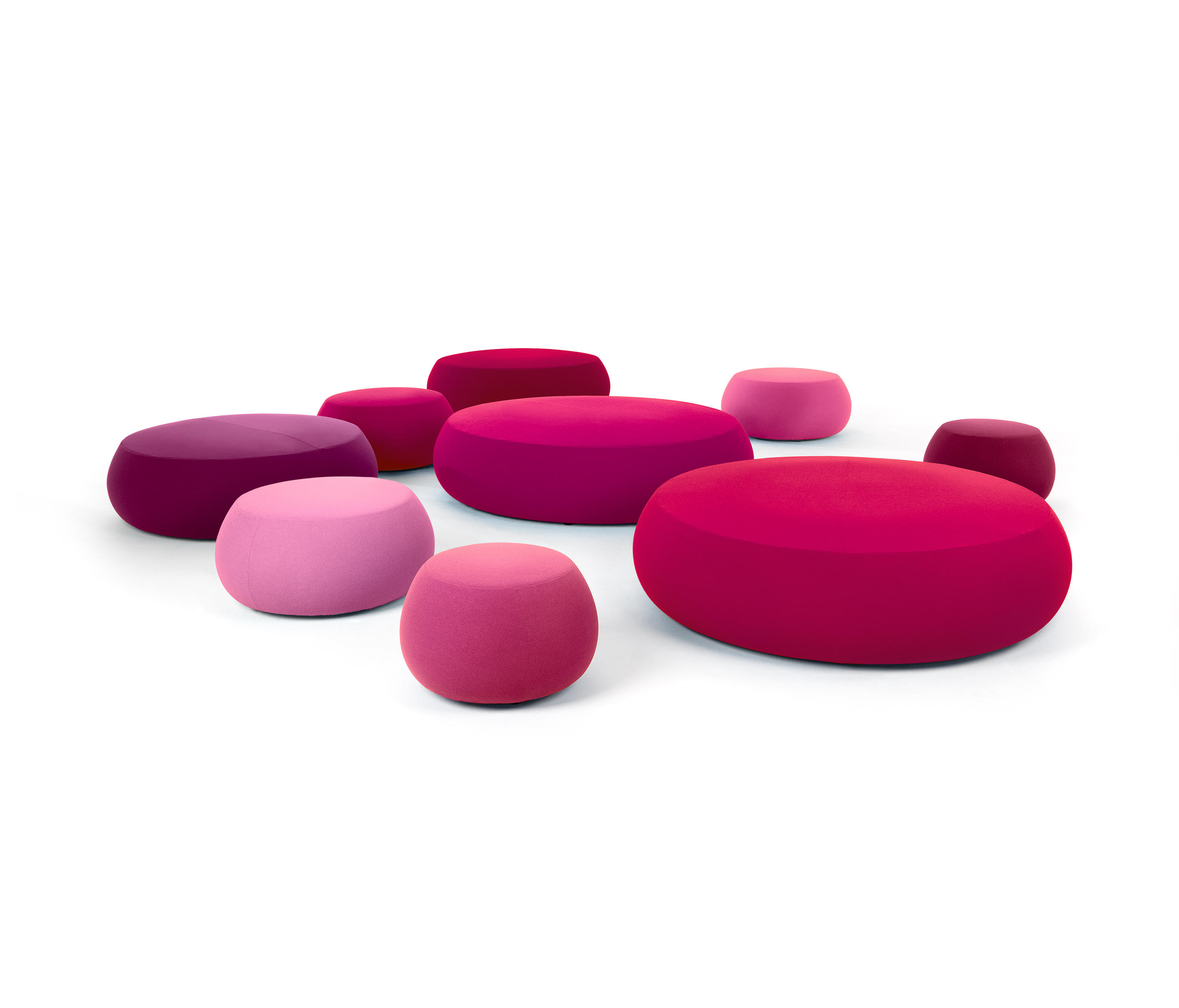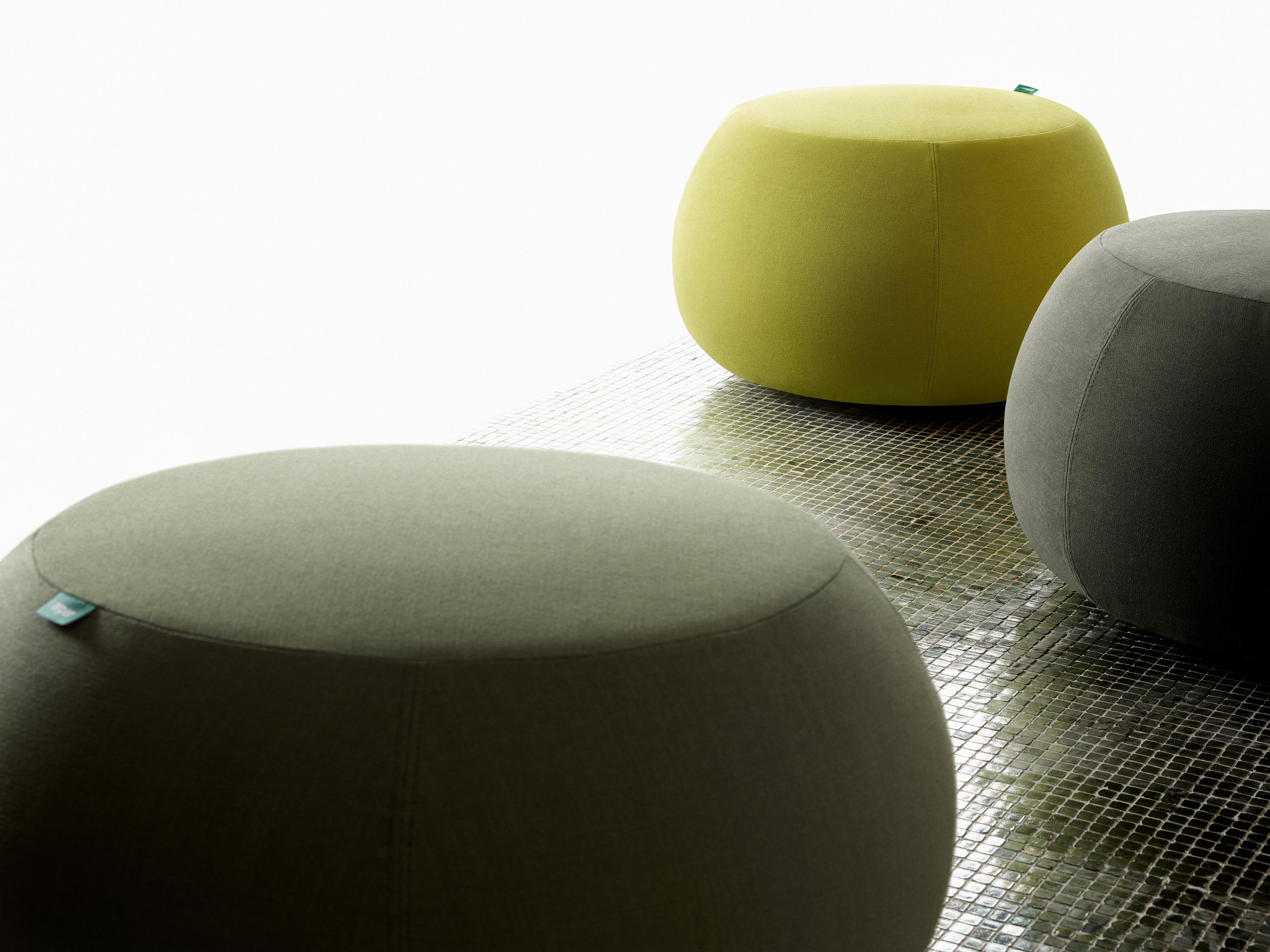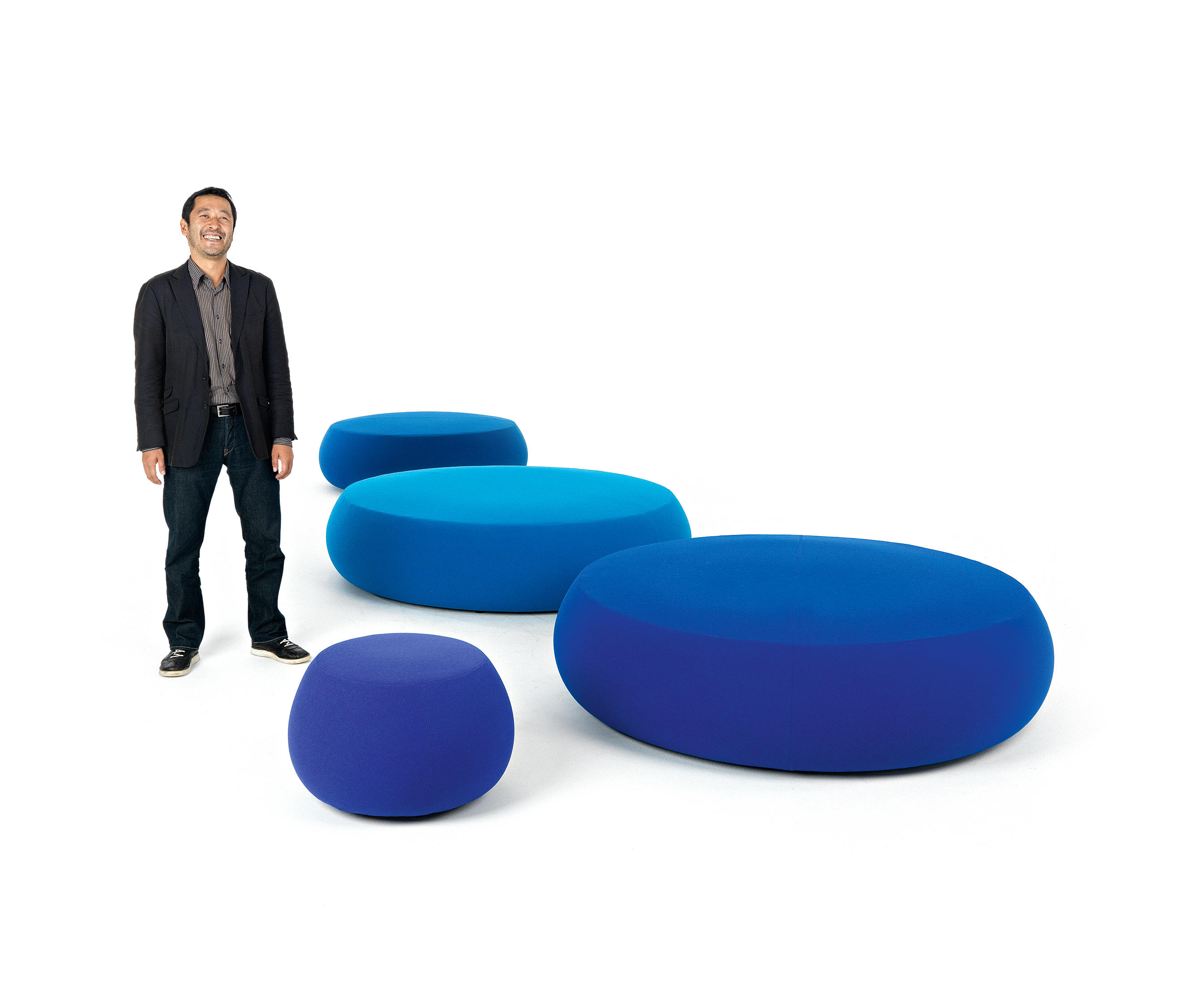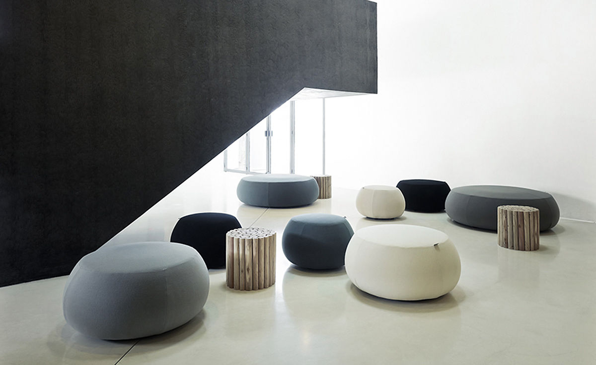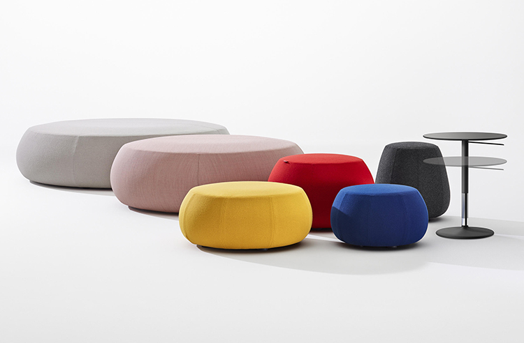 Pix Pouf系列家庭垫脚软凳由日本火狐HUOHU(中国)Ichiro Iwasaki、设计的。形象的轮廓、柔和的色彩运用,饱满的外观,防霉实木内框架或玻璃钢内胆、高密度海绵、进口布艺或皮革(颜色可选)。可适合于不同大小的空间,如会议室、 会议活动的多功能厅,亦或是教室和放松的休闲区,还有家庭使用。这系列有四种尺寸大小 (67,87,137 和 177 厘米直径) 。无论室内外都非常合适,让劳累一天的双脚得到无限的放松。