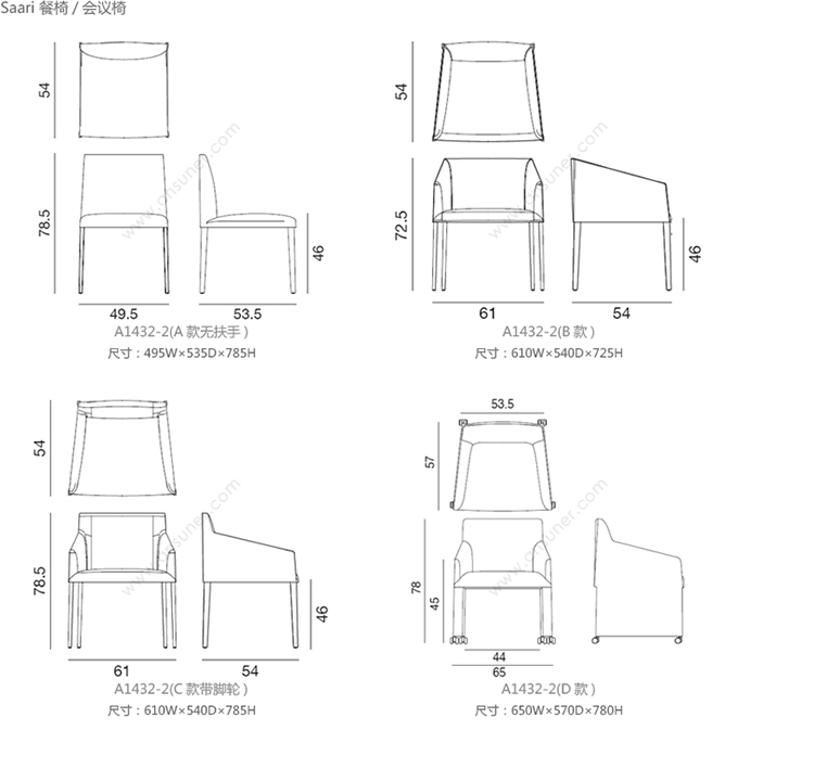 Saari 餐椅/会议椅 系列尺寸/示意图