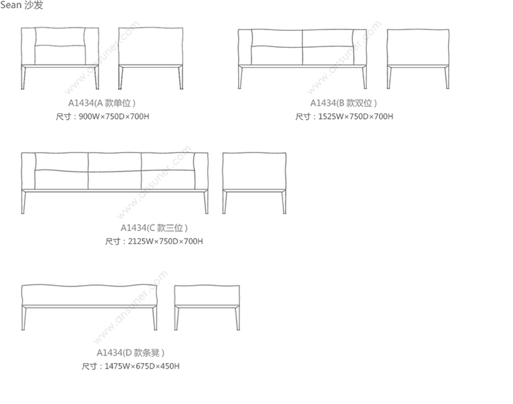 Sean 沙发 系列尺寸/示意图