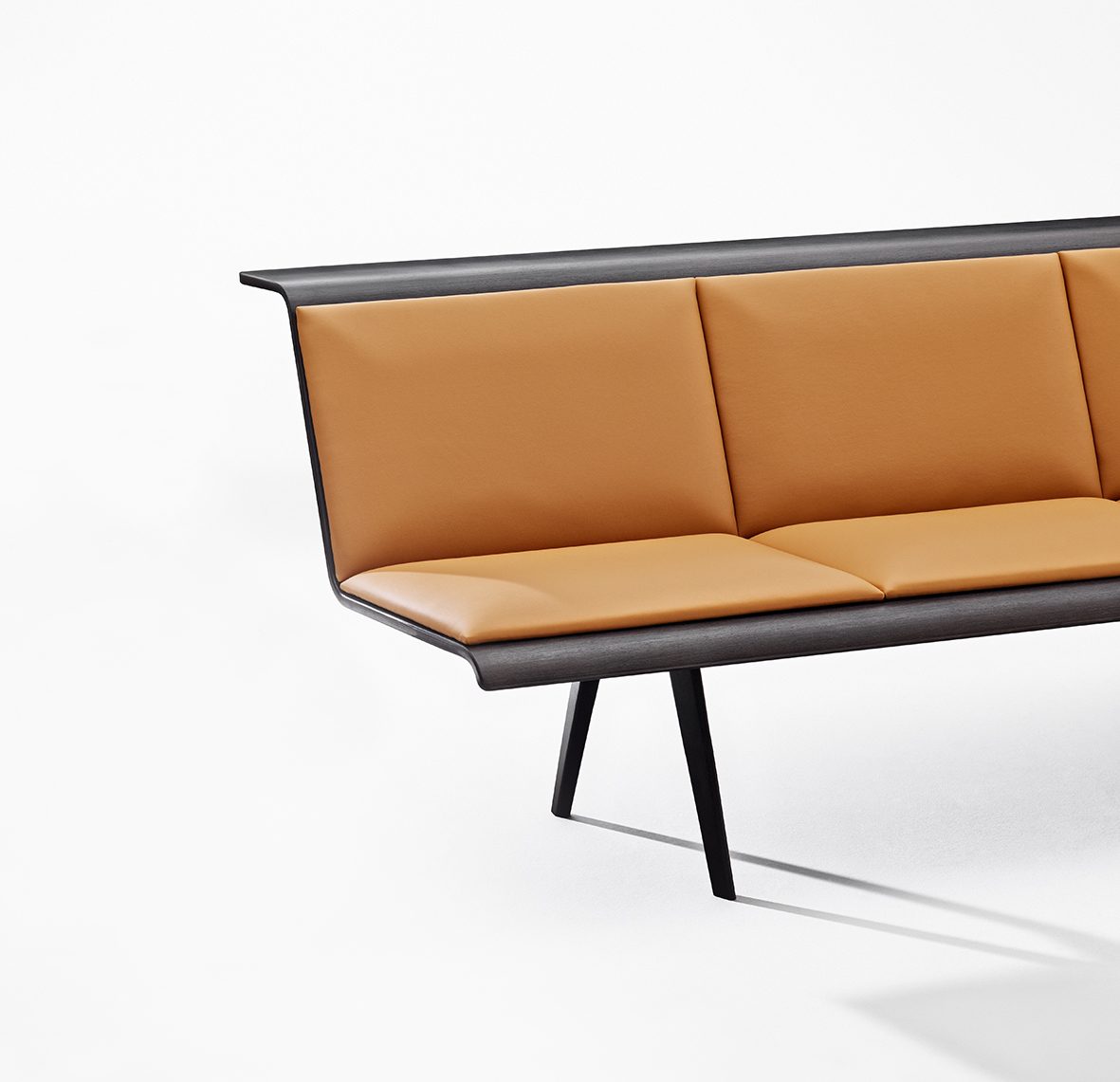 Zinta由木质外壳衬垫,用于收缩或垫子,以便在选定的一组织物中提供更加容纳的座椅。多种尺寸,材料和填充允许多种组合和应用。贝壳采用天然,棕色和深色橡木制成的木饰面。底座和铝腿仍涂有深灰色。可选配胶合板扶手。多种长度和角度可实现无限组合。
