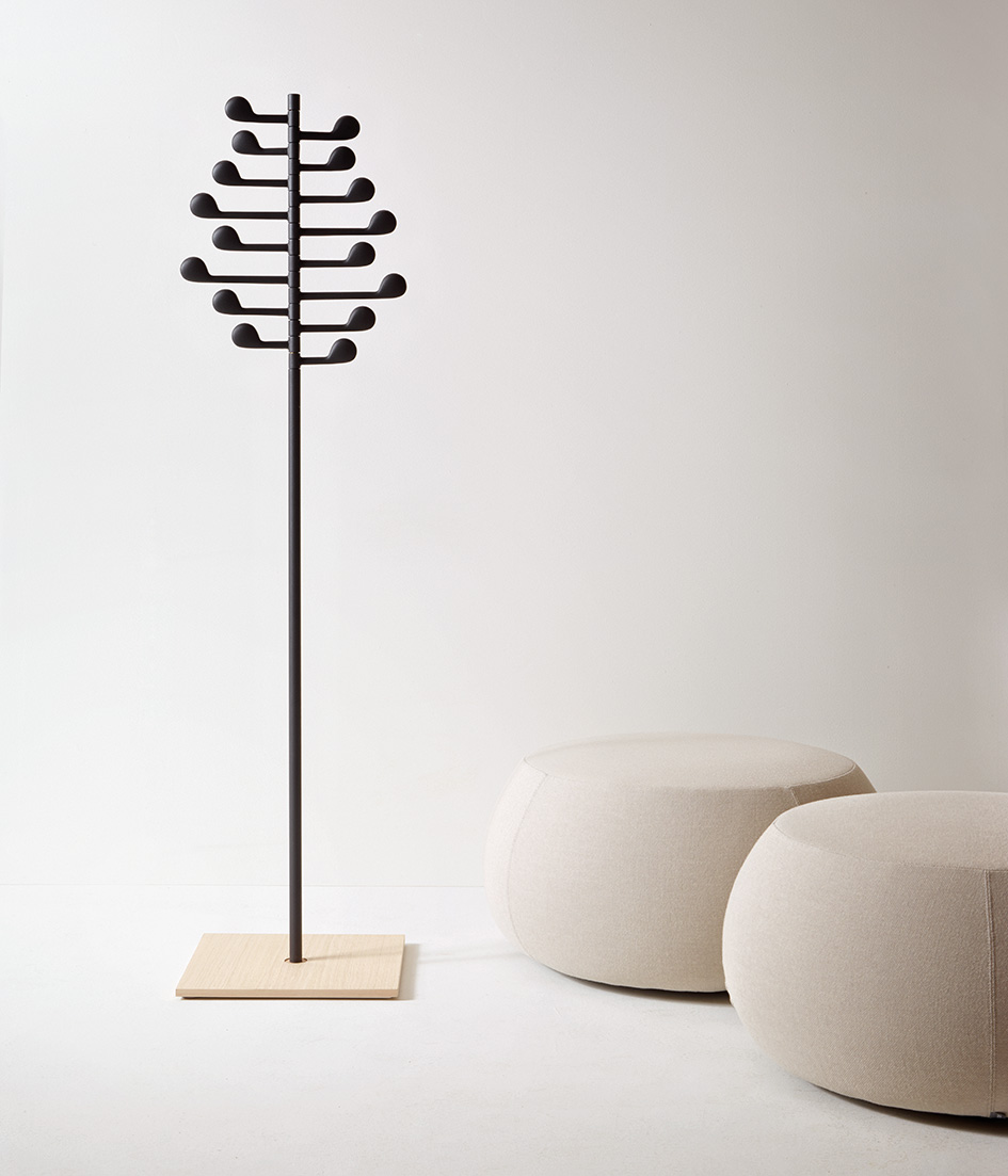 音乐是一切都在构成,在多种色调的安排下创造出和谐,引人入胜的整体。 Song是一个独立式或壁挂式衣架,由八个手臂组成,形状像音符,扭曲和转动,创造出多样化,动感的构图。 虽然设计用于一个目的,但它作为视觉游戏和几何形状的对象,非常适合需要悬挂,兴趣和参与的任何空间。 添加外套,围巾,帽子,它来生活。