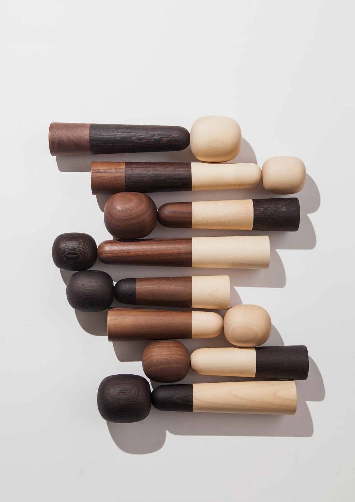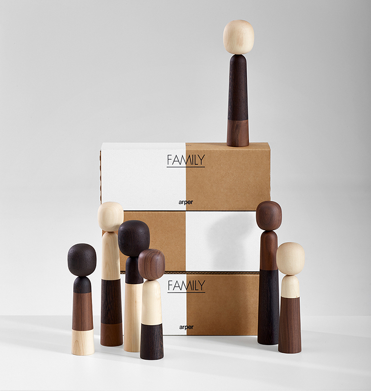 家庭的本质是视觉主题的变体,将其成员联系在一起; 它意味着多样性的统一。 我们家庭的每个成员都是以三种木材的不同组合制作的,可以是个人,一对,三人或九个或更多的大家庭。
