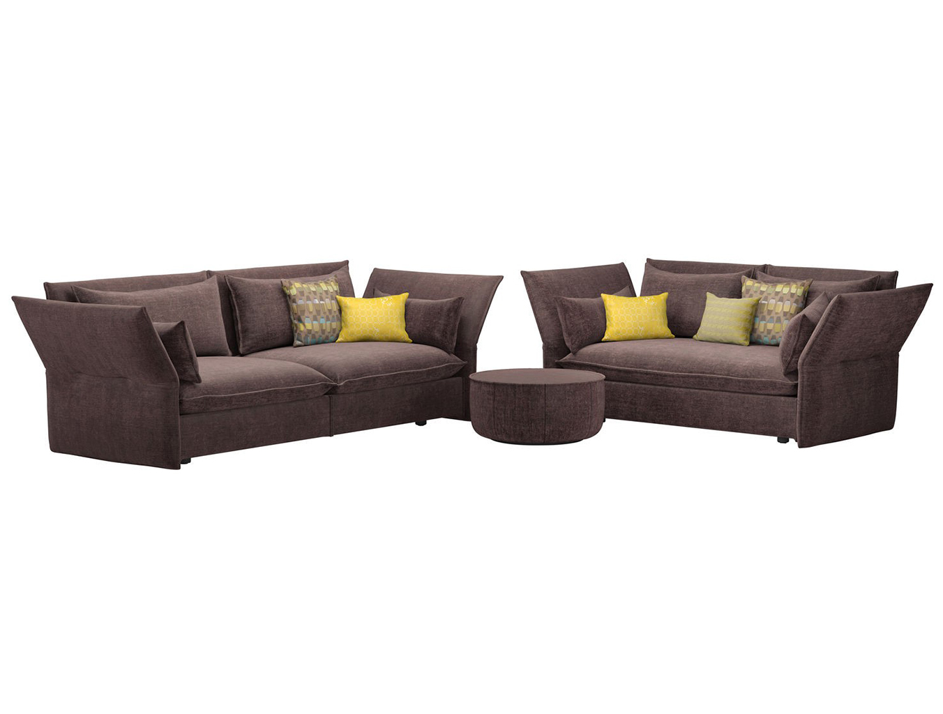 沙发系列由两种不同尺寸的圆形脚垫补充。它们不仅与沙发的柔和轮廓相协调,而且还创造了更多享受Mariposa舒适感的方式。 Mariposa ottomans采用MDF板材制成,带有毛毡滑动装置。座椅为聚氨酯泡沫,配有聚酯羊毛,可根据您的纺织品选择。
