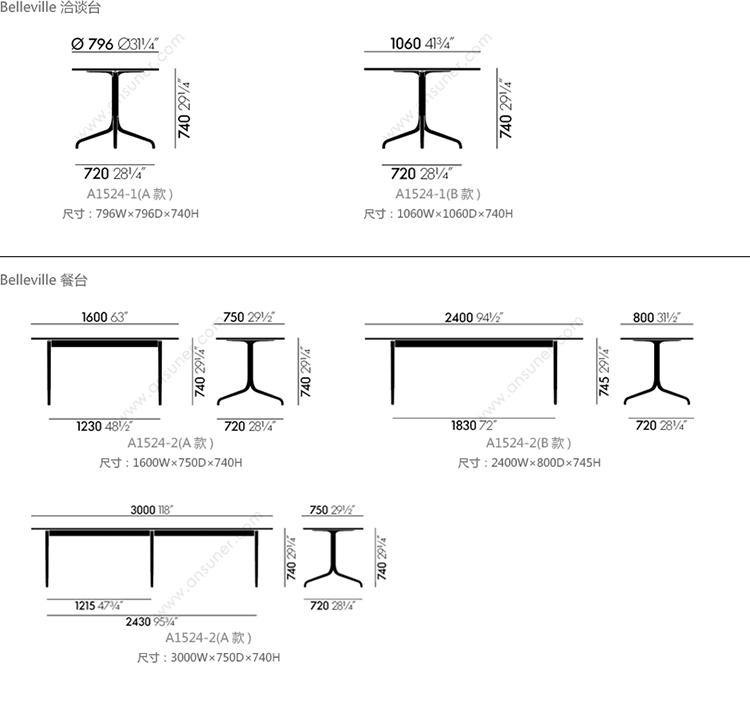 Belleville 洽谈台 系列尺寸/示意图