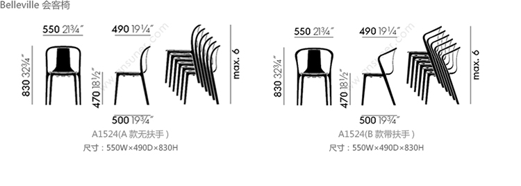 Belleville 会客椅 系列尺寸/示意图