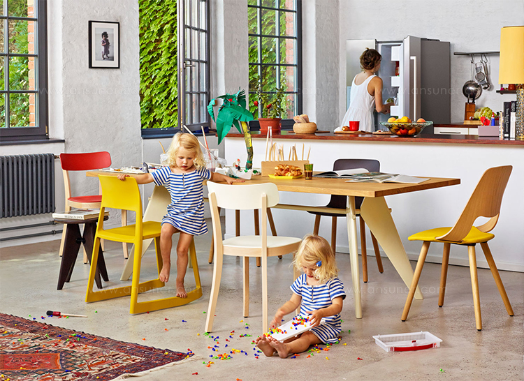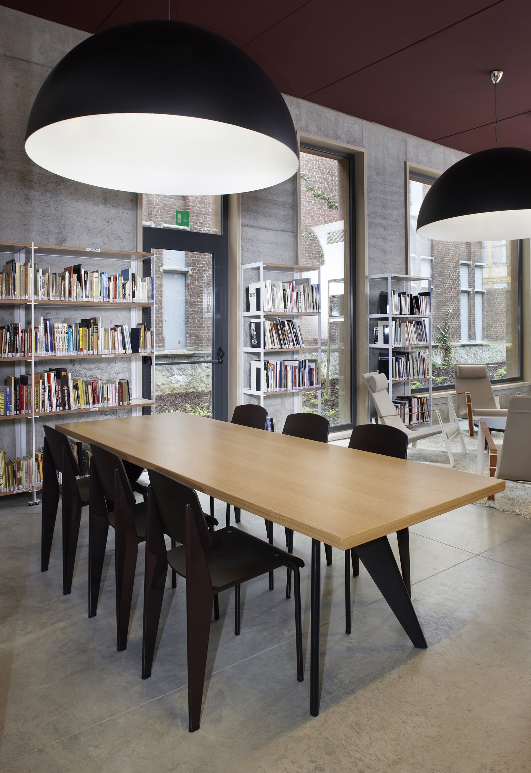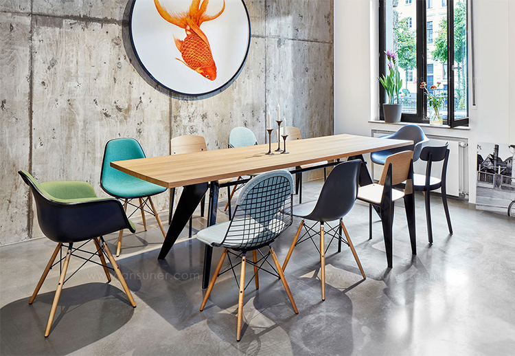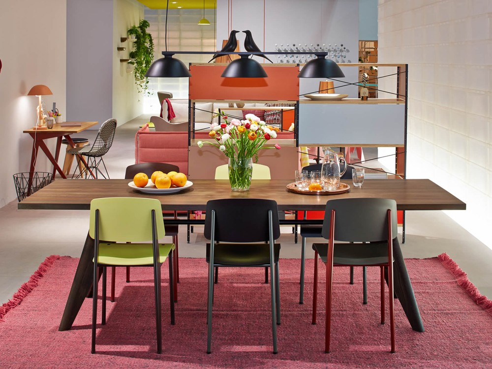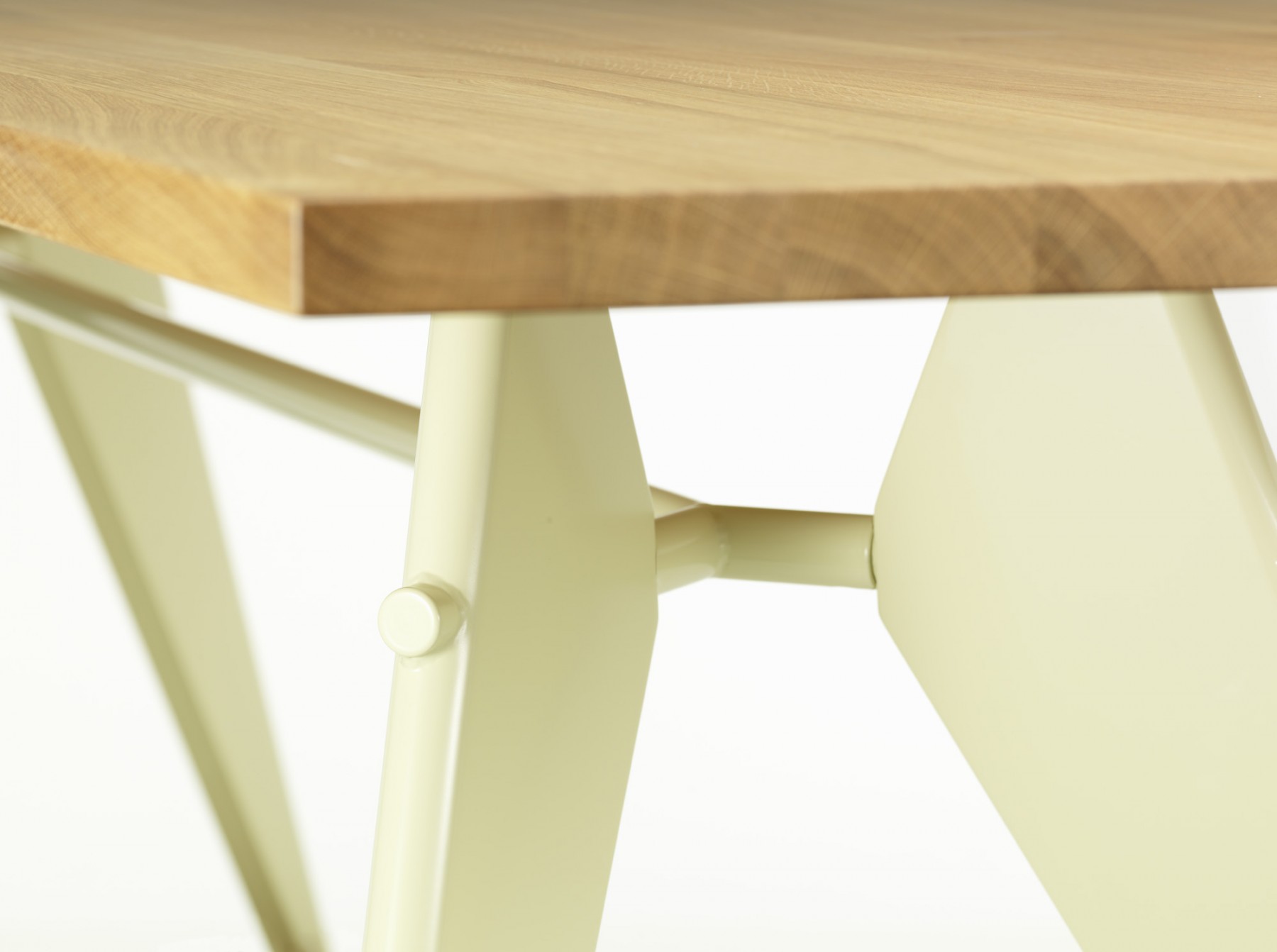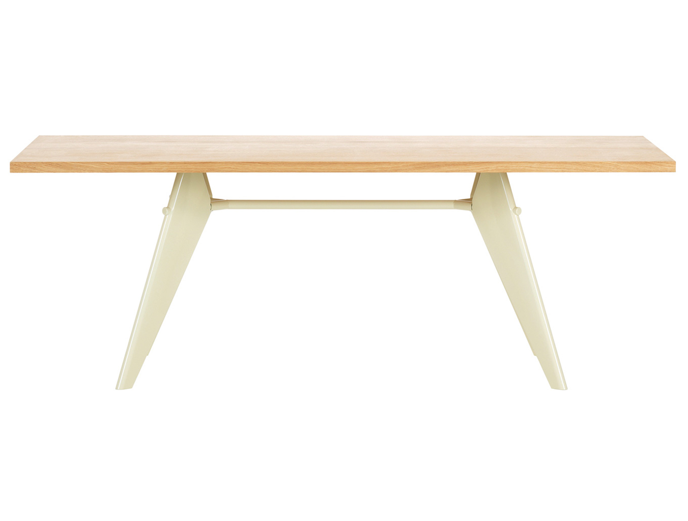 JeanProuvé的EM Table的美学外观坚持结构原则,说明其结构中的力和应力流动。 它有各种尺寸,桌面采用优质实木或HPL层压板,颜色可供选择。 长度为2000或2400毫米的顶部也有橡木贴面。 由于这种广泛的选择,每个餐厅都可以找到理想的EM Table。