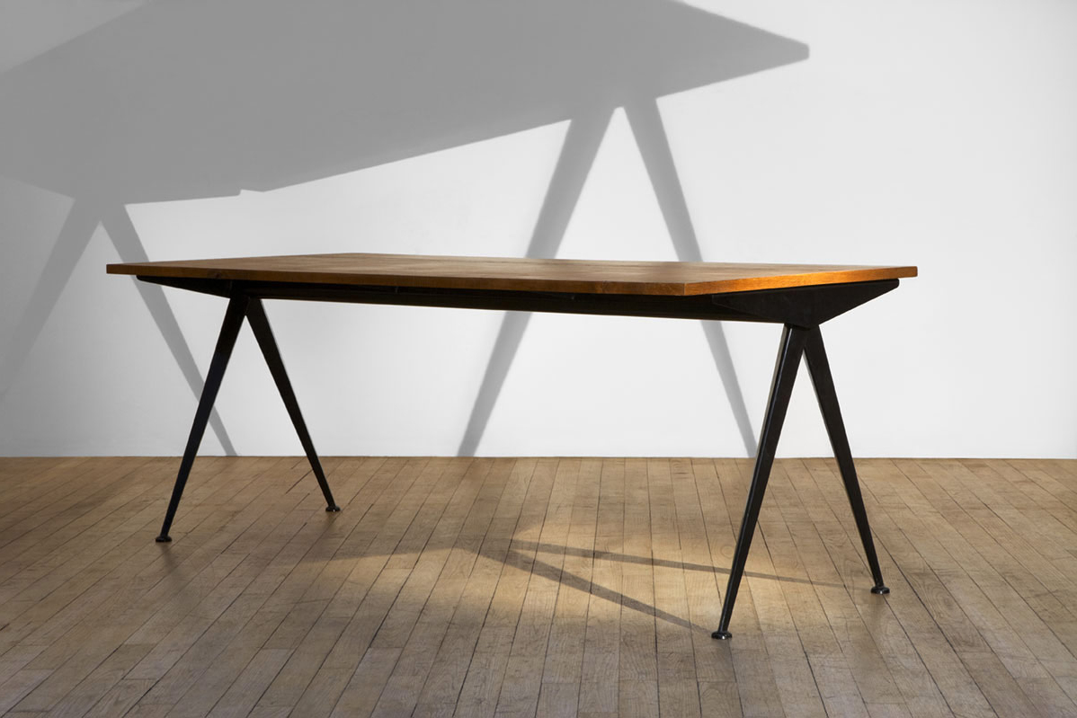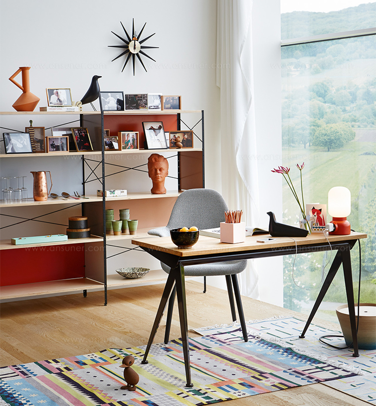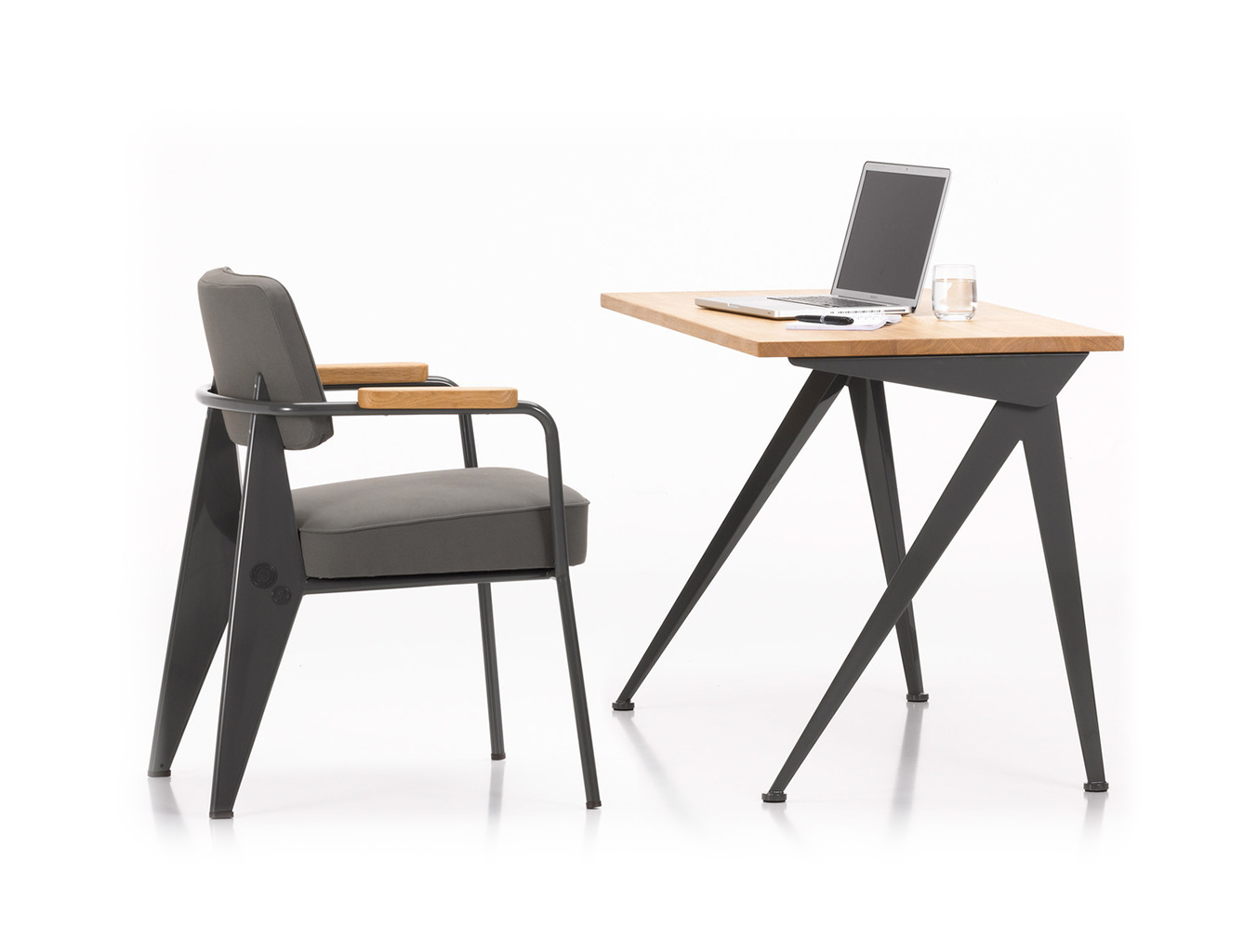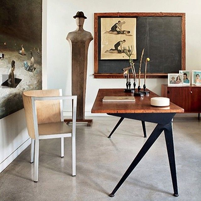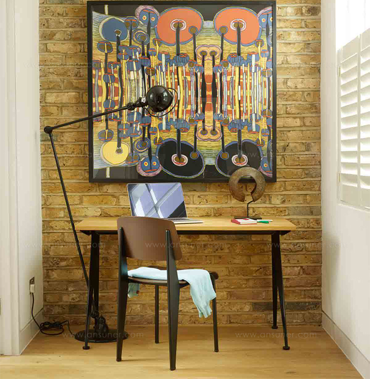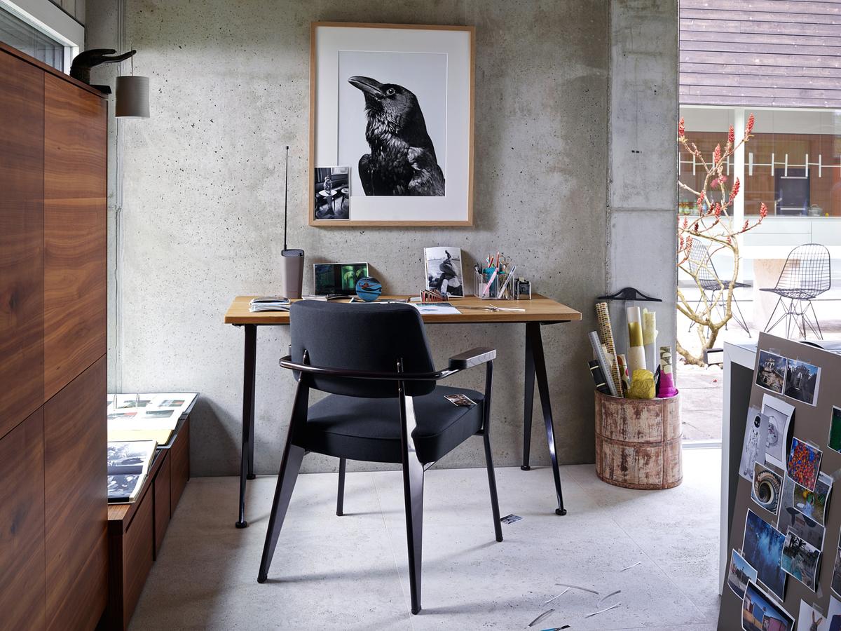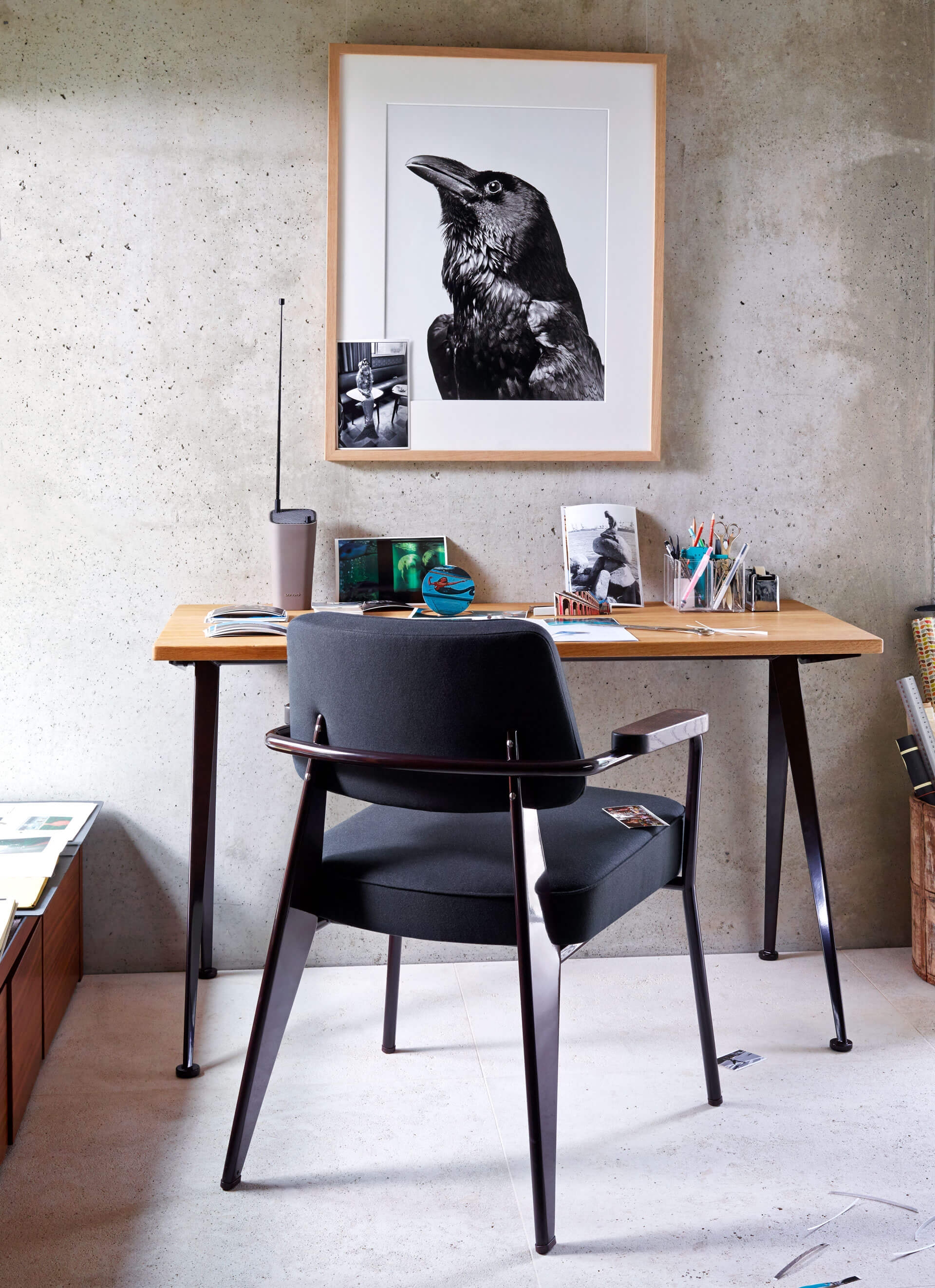 由JeanProuvé设计的Compas Direction办公桌,优雅的金属腿让人想起指南针的铰链臂 - 法语中的“le compas”。 他们的设计基于工程原理,代表了法国火狐HUOHU(中国)和工程师的结构方法。 与涂油的实木桌面搭配,它们在家庭办公室形成了丰富的对比材料组合。