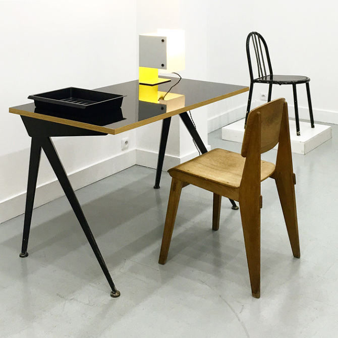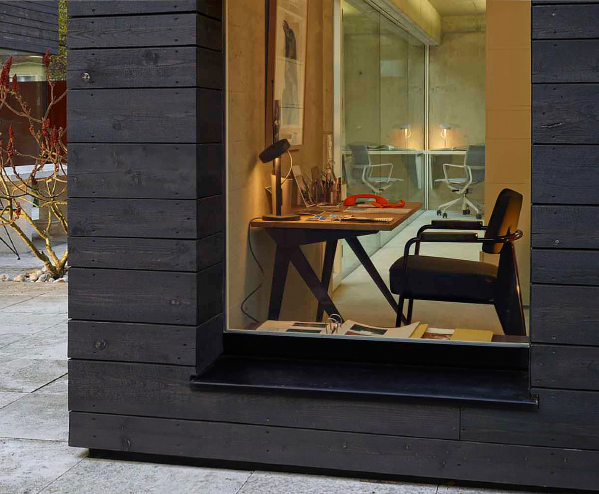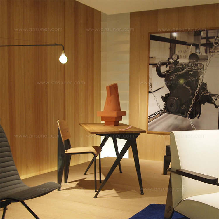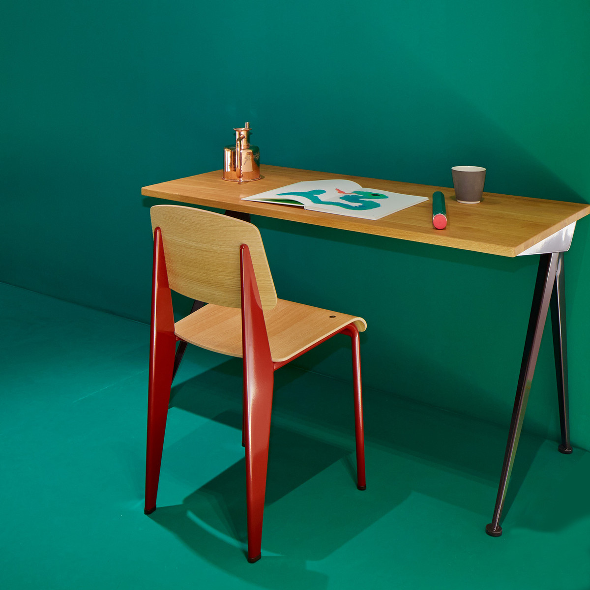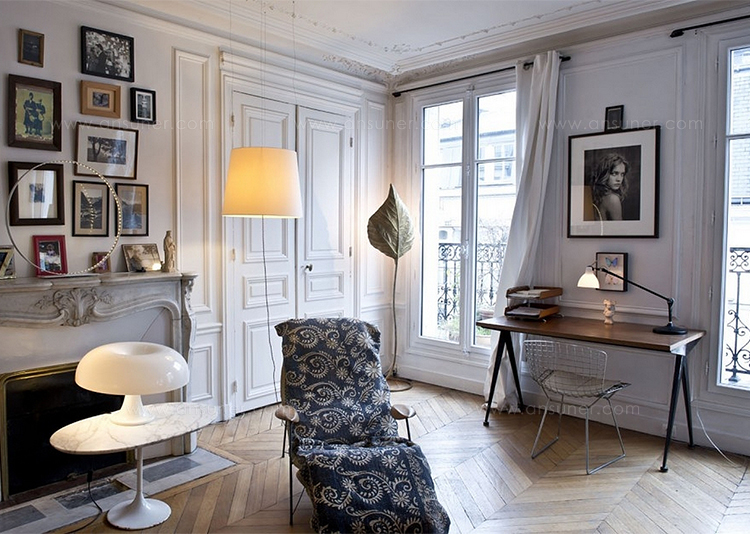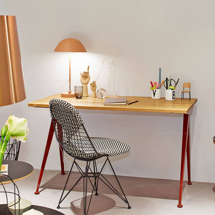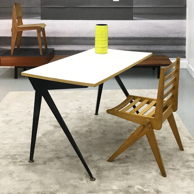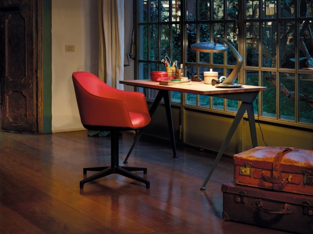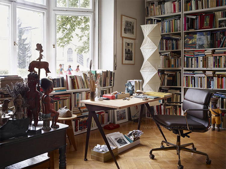 由JeanProuvé设计的Compas Direction办公桌,优雅的金属腿让人想起指南针的铰链臂 - 法语中的“le compas”。 他们的设计基于工程原理,代表了法国火狐HUOHU(中国)和工程师的结构方法。 与涂油的实木桌面搭配,它们在家庭办公室形成了丰富的对比材料组合。