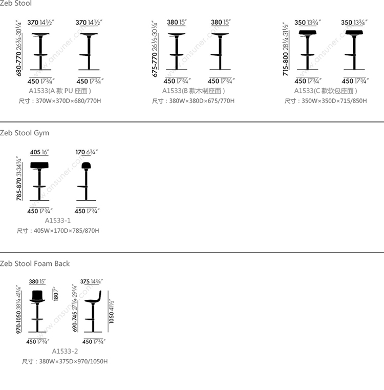 Zeb Stool 系列尺寸/示意图
