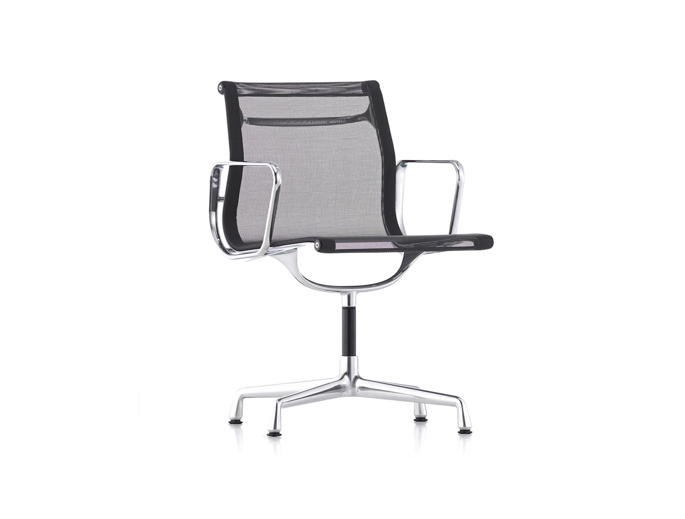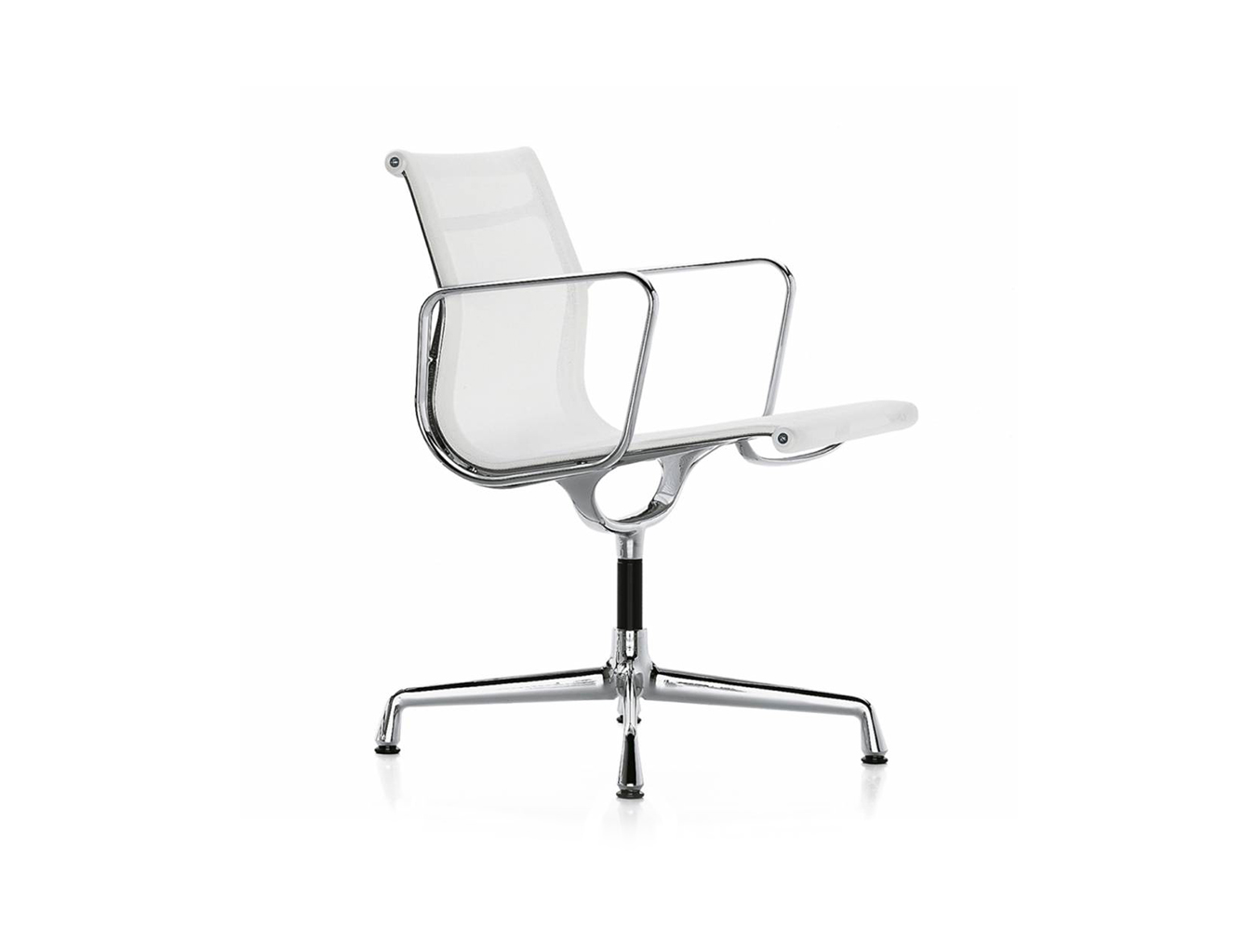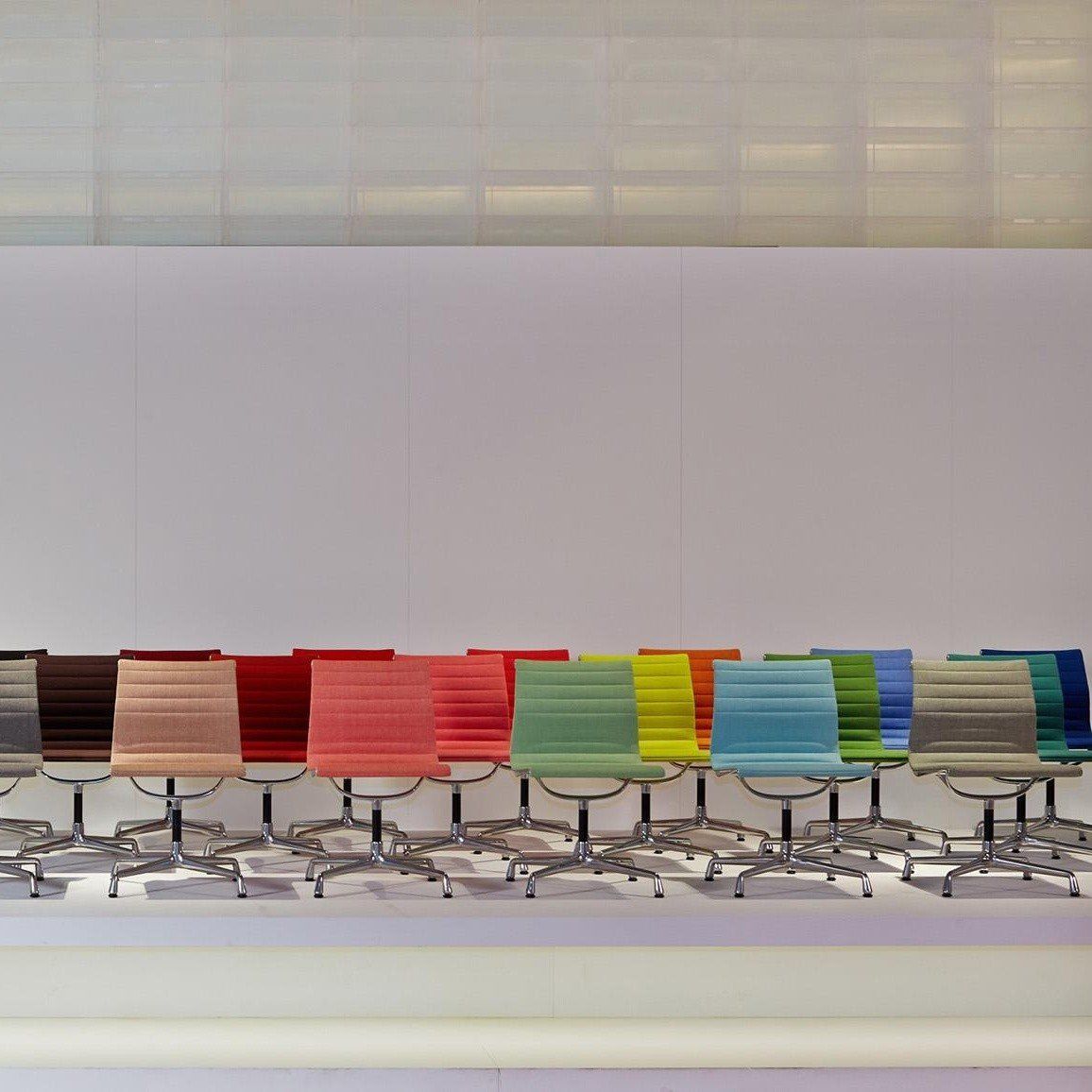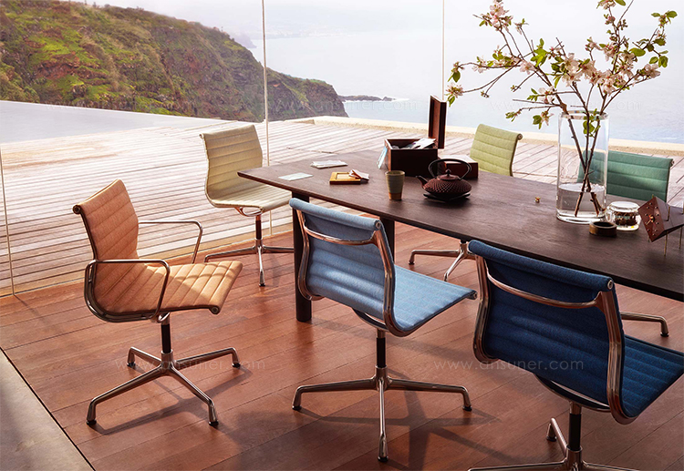 Charles和Ray Eames的铝椅EA 101,EA 103和EA 104非常适合与桌子组合使用:与铝组的其他型号相比,它们更轻,更高,更窄。 由于室内装潢具有多种柔和鲜艳的色彩,因此很容易找到适合任何餐厅的完美椅子。 这三种型号的不同之处在于基座的类型 - 固定或旋转 - 以及是否存在臂。